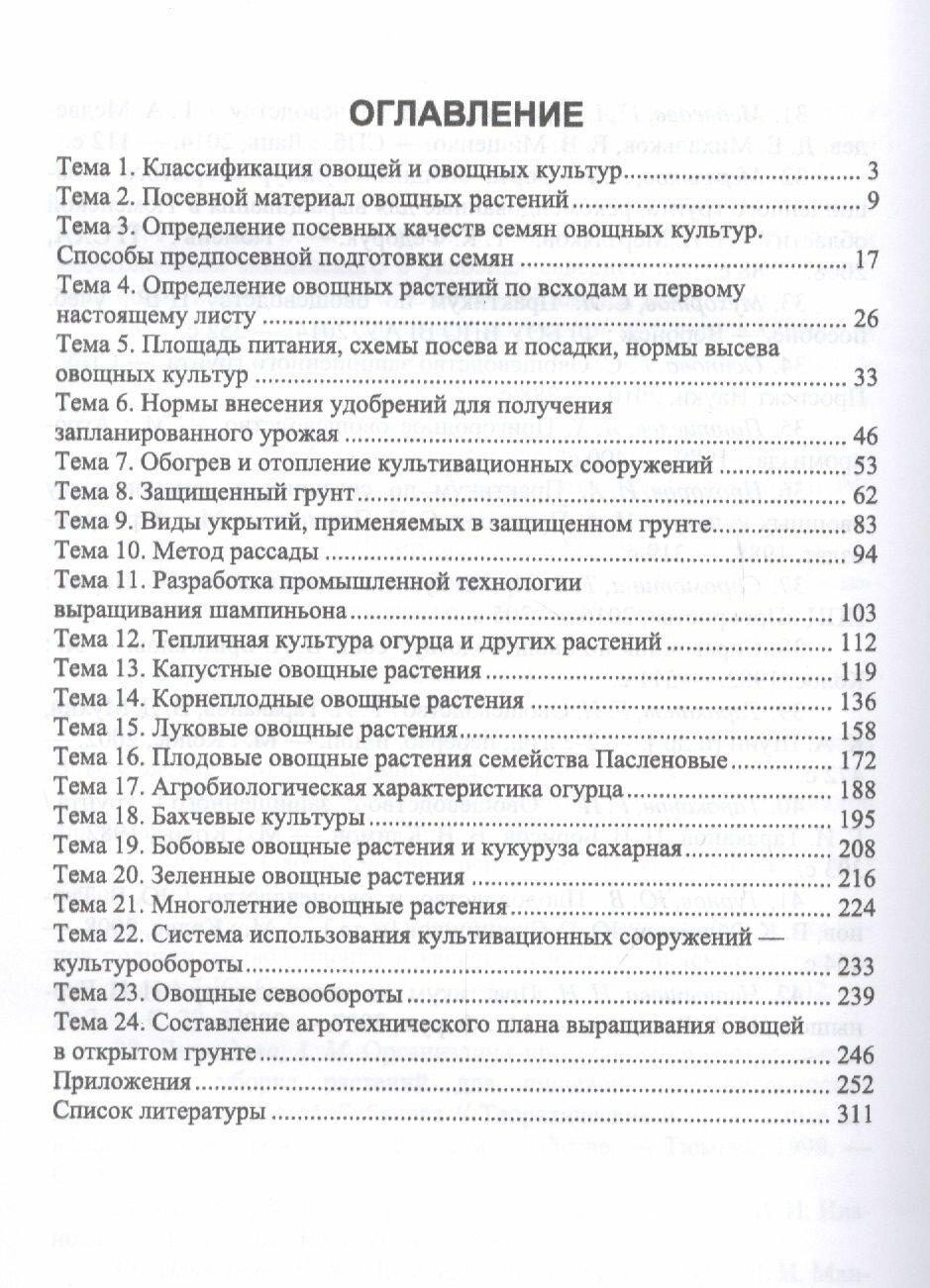 В учебном пособии рассмотрена классификация овощных растений, их морфологические и биологические особенности, приведены нормы высева, схемы и густота посадки. Даны хозяйственные признаки сортов и гибридов овощных культур. Приведены сведения по овощеводству открытого и защищенного грунта, необходимые для проведения лабораторно-практических занятий и усвоения теоретических основ этой дисциплины.