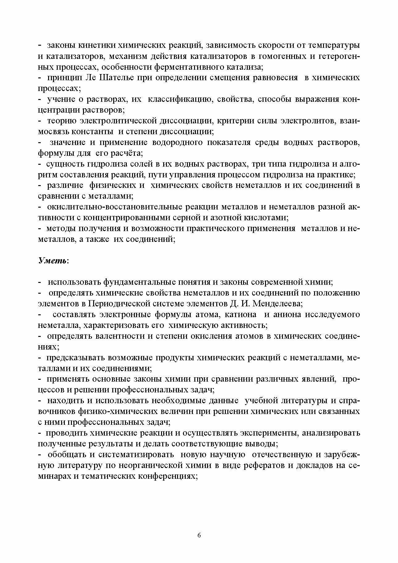 Программы общеобразовательных учебных дисциплин «Химия», «Общая и неорганическая химия» предназначены для изучения химии в профессиональных образовательных организациях СПО, реализующих образовательную программу среднего общего образования в пределах освоения основной профессиональной образовательной программы СПО (ОПОП СПО) на базе основного общего образования при подготовке квалифицированных рабочих, служащих, специалистов среднего звена. Цель освоения дисциплины «Неорганическая химия» – заложить основы научного мировоззрения, фундамент теоретических и практических химических знаний будущего специалиста широкого профиля.