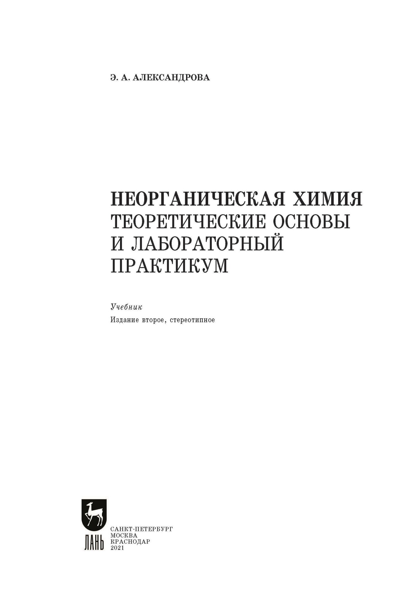 Неорганическая химия. Теоретические основы и лабораторный практикум (Александрова Эльвира Александровна); Лань, 2020