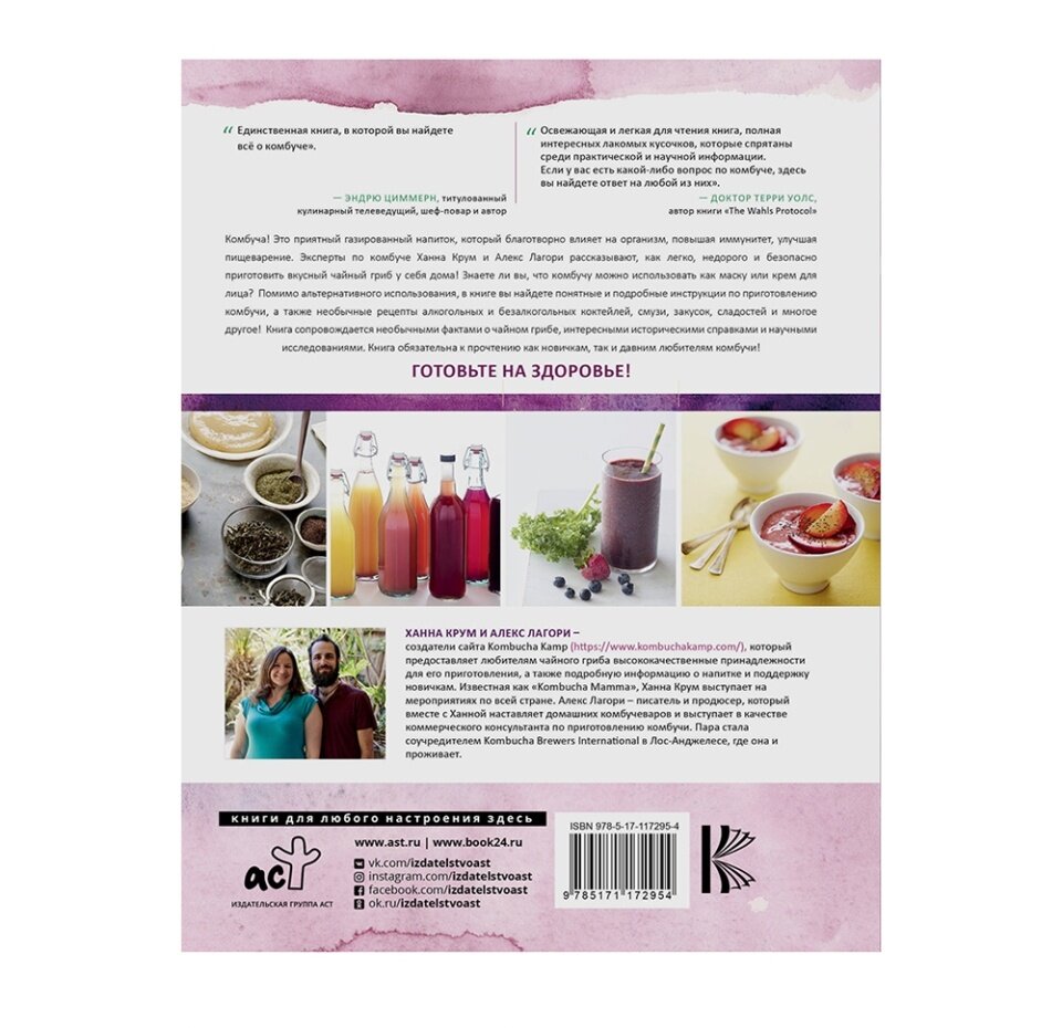 Комбуча! Это приятный газированный напиток, который благотворно влияет на организм, повышая иммунитет, улучшая пищеварение. Эксперты по комбуче Ханна Крум и Алекс Лагори рассказывают, как легко, недорого и безопасно приготовить вкусный чайный гриб у себя дома! Знаете ли вы, что комбучу можно использовать как маску или крем для лица? Помимо альтернативного использования, в книге вы найдете понятные и подробные инструкции по приготовлению комбучи, а также необычные рецепты алкогольных и безалкогольных коктейлей, смузи, закусок, сладостей и многое другое! Книга сопровождается необычными фактами о чайном грибе, интересными историческими справками и научными исследованиями. Книга обязательна к прочтению как новичкам, так и давним любителям комбучи!