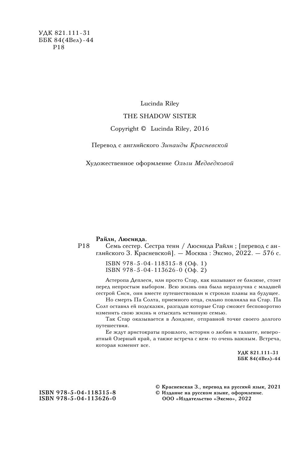 Книга: Семь сестер. Сестра тени (Люсинда Райли); Эксмо, Редакция 1, 2024