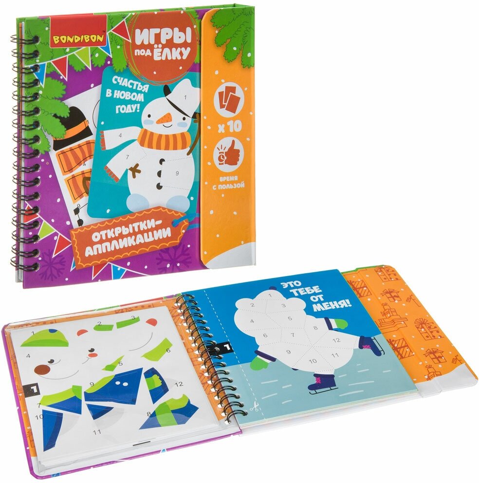 Компактные развивающие игры под ёлку. ОТКРЫТКИ-АППЛИКАЦИИ. Новогодняя серия (ВВ4648); Bondibon, 2022