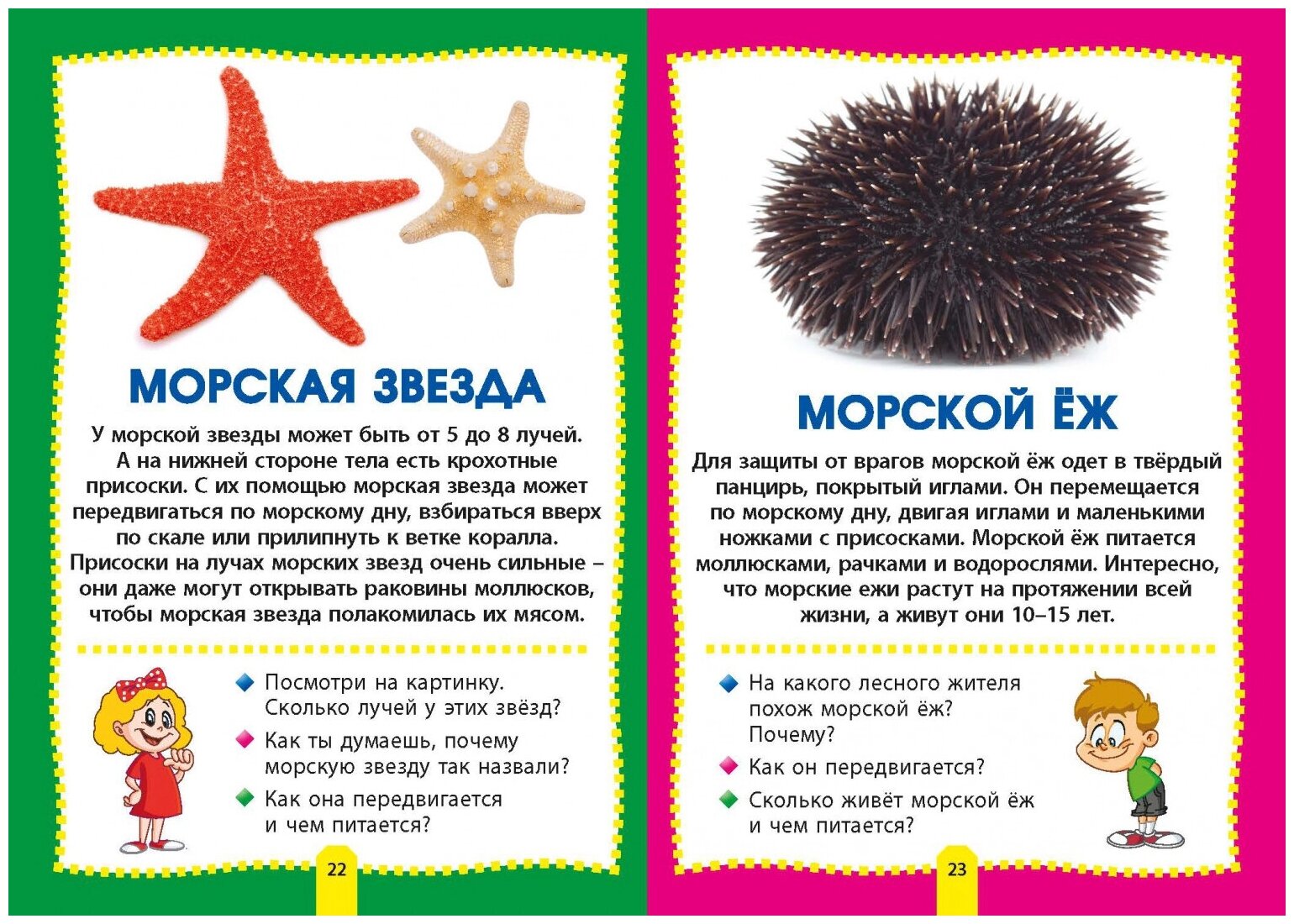 Мне и дочке очень понравилась фотокнига "Морские обитатели". Мы узнали много новых видов рыб. Даже не все взрослые знают такое количество морских обитателей. Например, мы узнали о существовании летучей рыбы. На каждой странице рассказ о каждом виде рыб и реалистичные иллюстрации к ним. Под каждым новым видом морского жителя рубрика "вопрос-ответ", где ребёнок может ответить на вопросы.