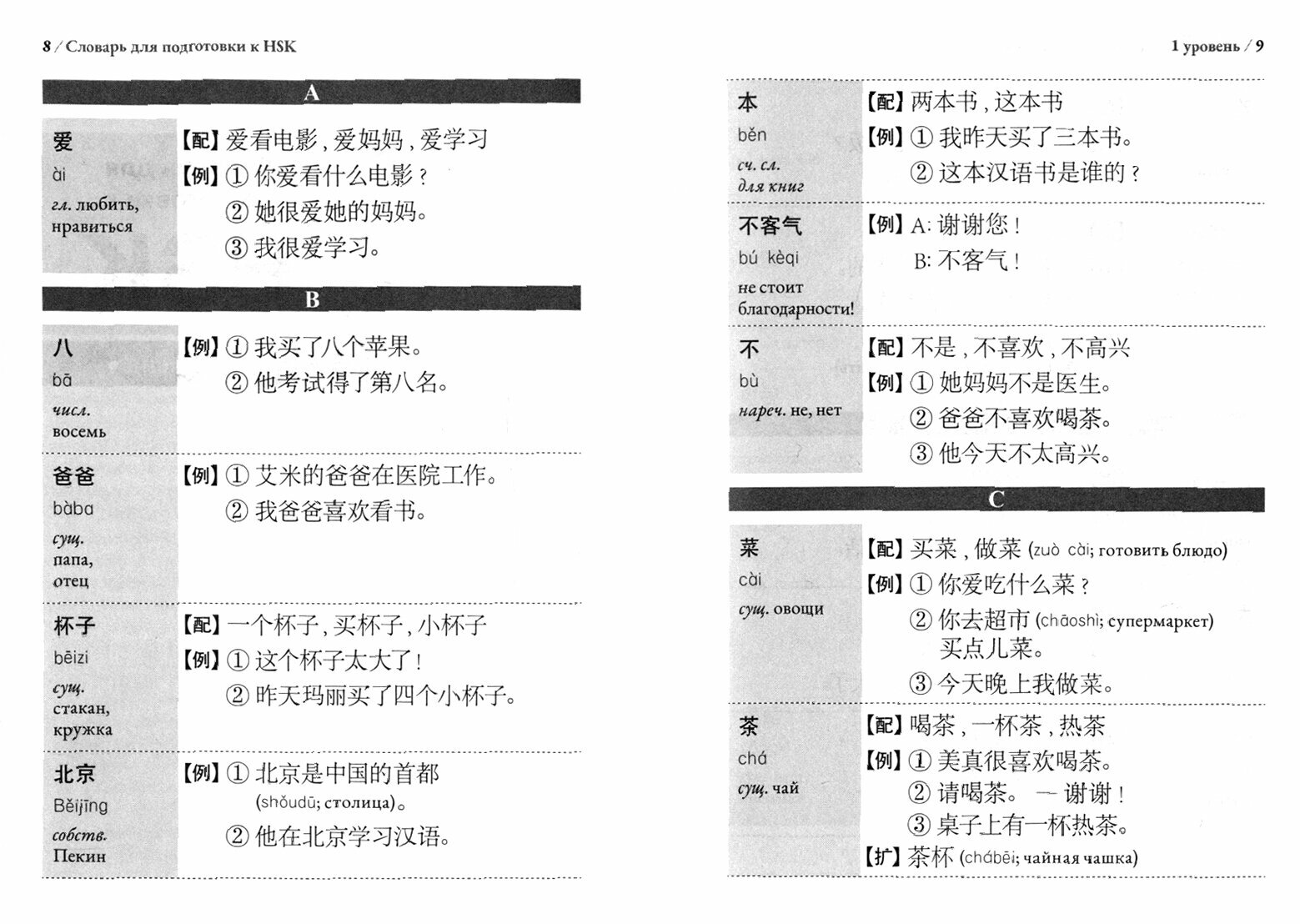 Словари содержат лексический минимум первого, второго, третьего, четвертого, пятого и шестого уровня экзамена HSK. К словам дается транскрипция пиньинь, перевод на русский, общеупотребительные словосочетания и примеры. Словарь будет полезен не только готовящимся к экзамену HSK, но и всем, кто изучает китайский язык.