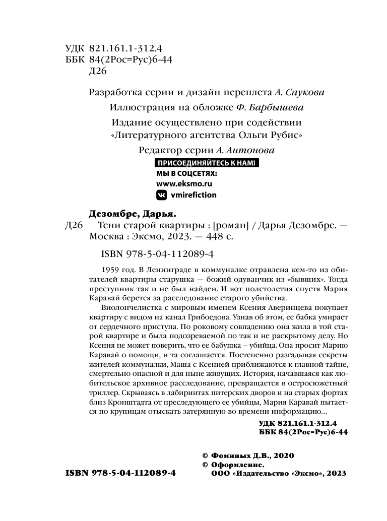 Книга: Тени старой квартиры (Дарья Дезомбре); Эксмо, Редакция 1, 2023