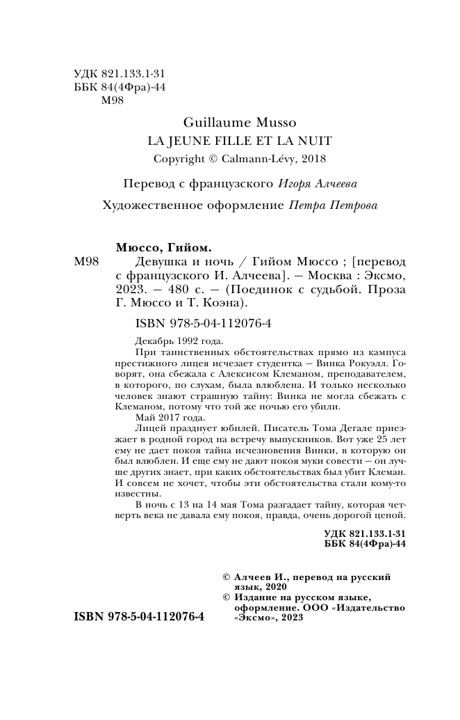 | Серия | Поединок с судьбой. Проза Г. Мюссо и Тьерри Коэна |