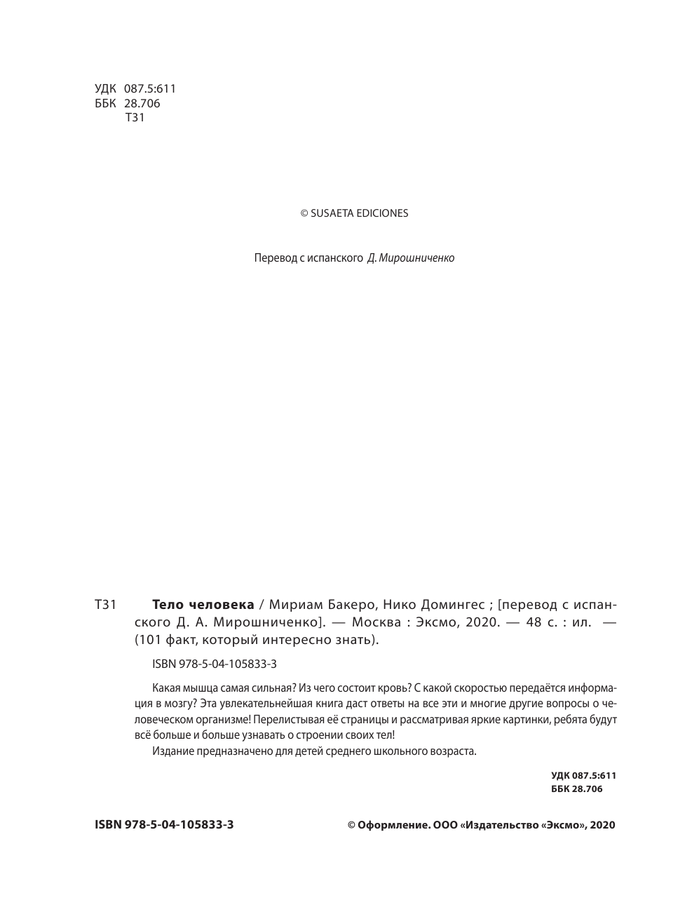 Книга: Тело человека (Домингес Нико, Бакеро Мириам); ООО "Издательство "Эксмо", 2020