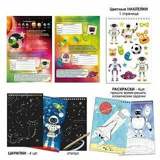 Активити-скетчбук "Космороботы галактики Андроника" - это веселое и полезное занятие для маленького космонавта! Вместе с забавными роботами и их домашними питомцами - космодронами, ребенок выполнит множество увлекательных заданий, направленных на развитие мелкой моторики, внимательности, логики и фантазии. На страницах скетчбука фантастические истории органично переплетаются с научно-популярными фактами на тему космоса. А интересные задания помогут научить малыша решать простые примеры на сложение и вычитание до 10 и подготовят его руку к письму. Удобный формат скетчбука позволит брать его на прогулку или в путешествие, и он станет интересным и полезным спутником ребенка!