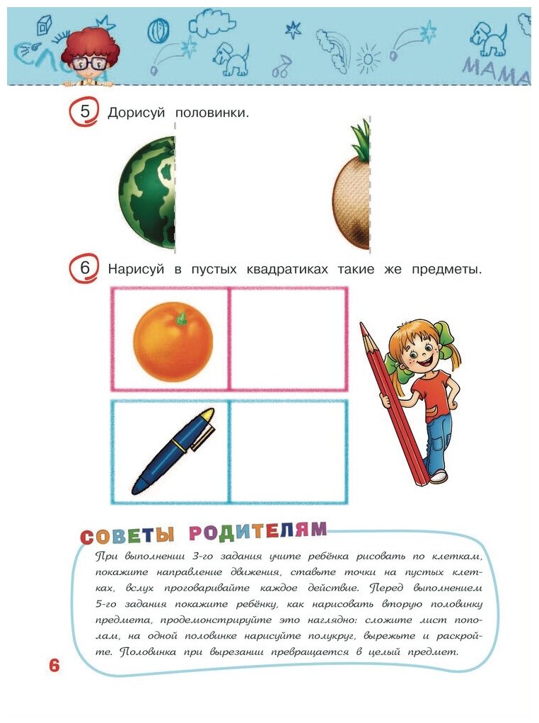 Отличное учебное пособие для ребёнка в возрасте 5-6 лет, которое может использоваться в качестве дополнения к основной программе учебной подготовки в школе. Удобное содержание и удобная организация учебных занятий, высокое качество изготовления самой книги, ребенку интересно — это самое, на мой взгляд, важное. Могу порекомендовать всем родителям, которым не безразлична учеба и подготовка ребенка к школе.