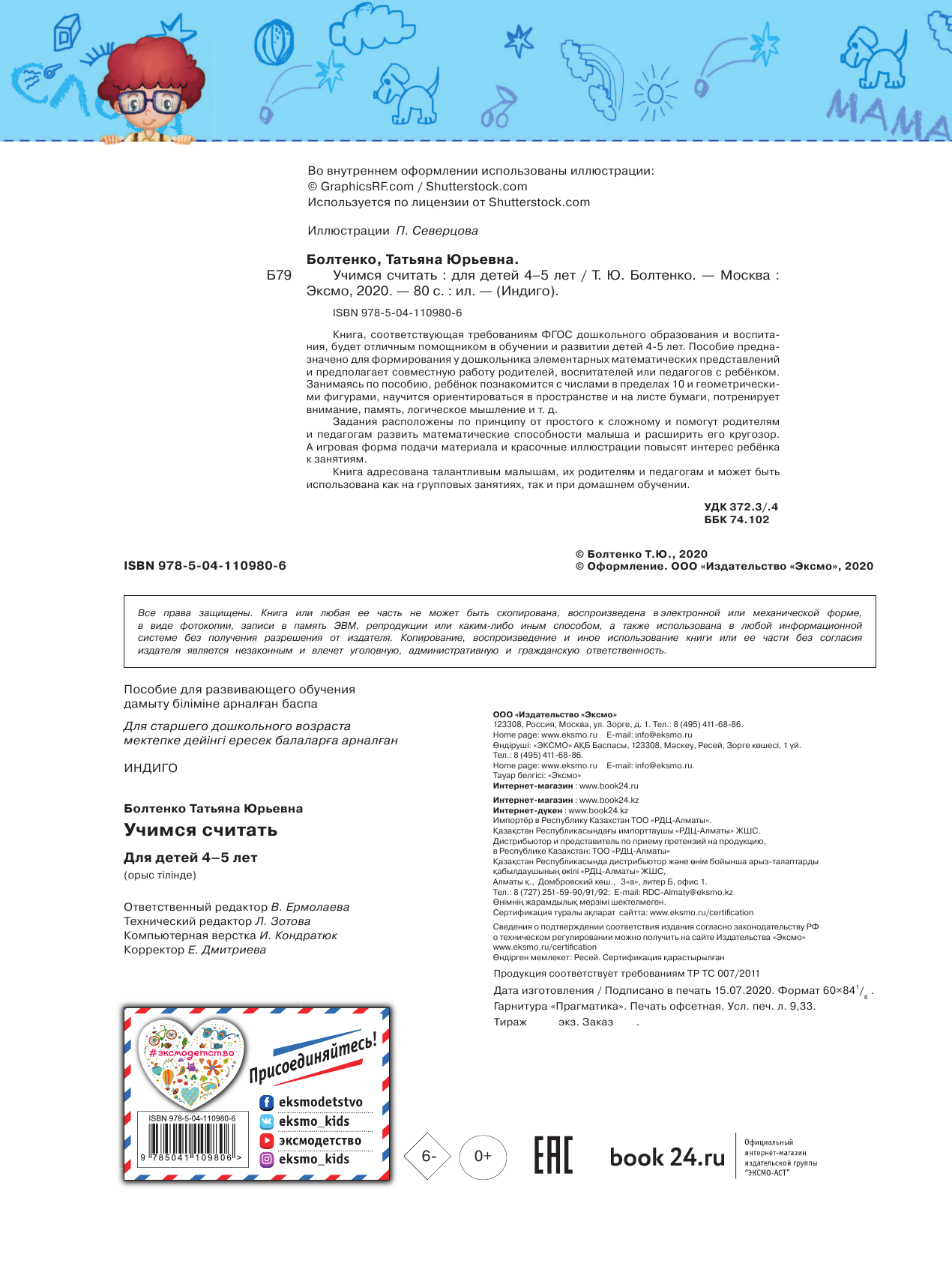 Учимся считать. Для детей 4-5 лет (Болтенко Татьяна Юрьевна); Эксмодетство, 2020