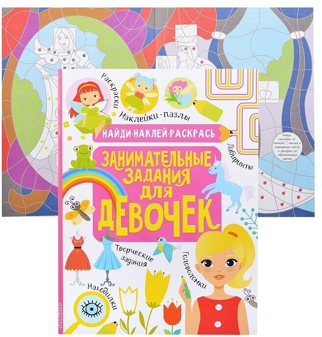 В книге "Занимательные задания для девочек" разнообразие творческих заданий со сказочными принцессами:
