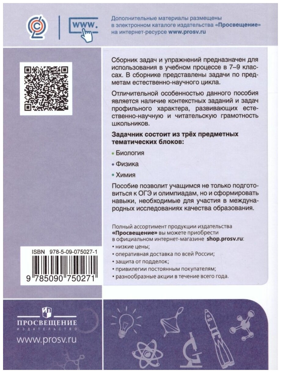 Предлагаемый сборник задач и упражнений для 7-9 классов выполняет функцию одного из инструментов достижения образовательных результатов по биологии, физике и химии в соответствии с требованиями ФГОС ООО.