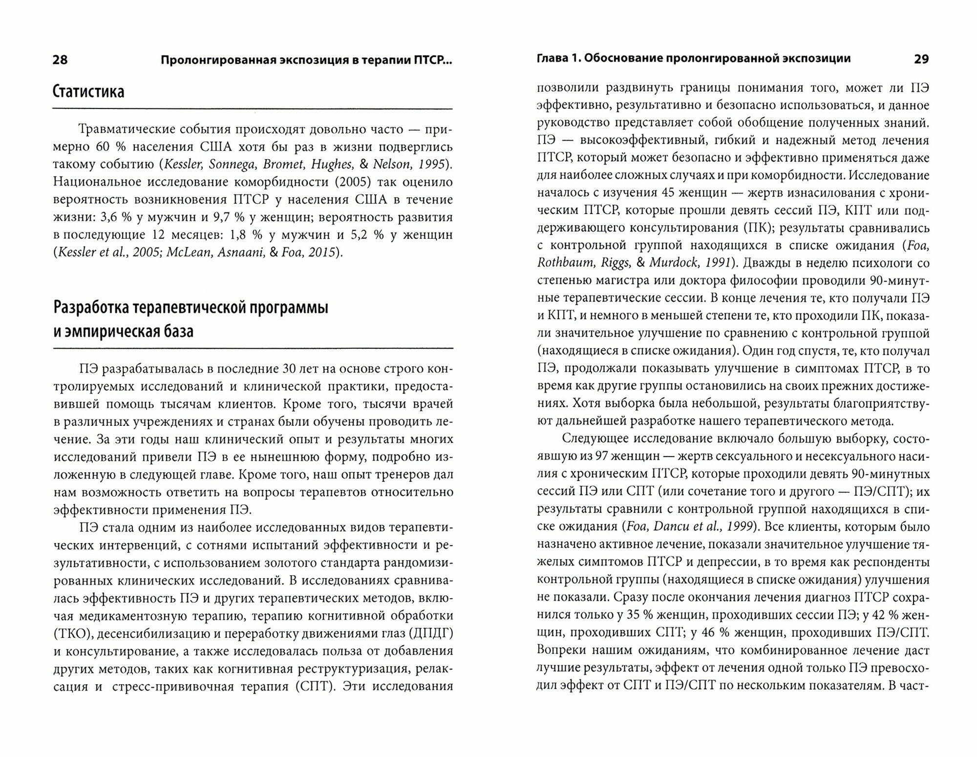 Эффективная современная методика терапии посттравматического стрессового расстройства — пролонгированная экспозиция, позволяющая клиенту эмоционально обработать травматический опыт и избавиться от связанных с травмой симптомов. Под руководством терапевта клиент в ходе индивидуально разработанной программы переживает безопасные, но провоцирующие тревогу ситуации. Цель программы - помочь клиенту преодолеть страх и другие симптомы ПТСР. В книге рассматриваются случаи из практики и методы, с успехом примененные для снижения и устранения симптоматики. Данное руководство рассчитано на терапевтов, использующих для лечения ПТСР пролонгированную экспозицию и методы когнитивно-поведенческой терапии.
