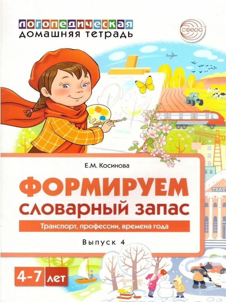 Домашняя логопедическая тетрадь. Тетрадь 4. Формируем словарный запас. Транспорт профессии (Косинова Елена Михайловна); Творческий центр Сфера Издательство, 2021