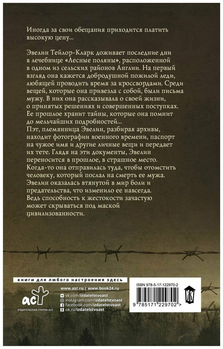 Эвелин Тейлор-Кларк доживает последние дни в лечебнице "Лесные поляны", расположенной в одном из сельских районов Англии. На первый взгляд она кажется добродушной пожилой леди, любящей проводить время за кроссвордами. Среди вещей, которые она привезла с собой, были письма мужу. В них она рассказывала ему о своей жизни, о принятых решениях и совершенных поступках. Ее прошлое хранит тайны, которые она помнит до мельчайших подробностей…