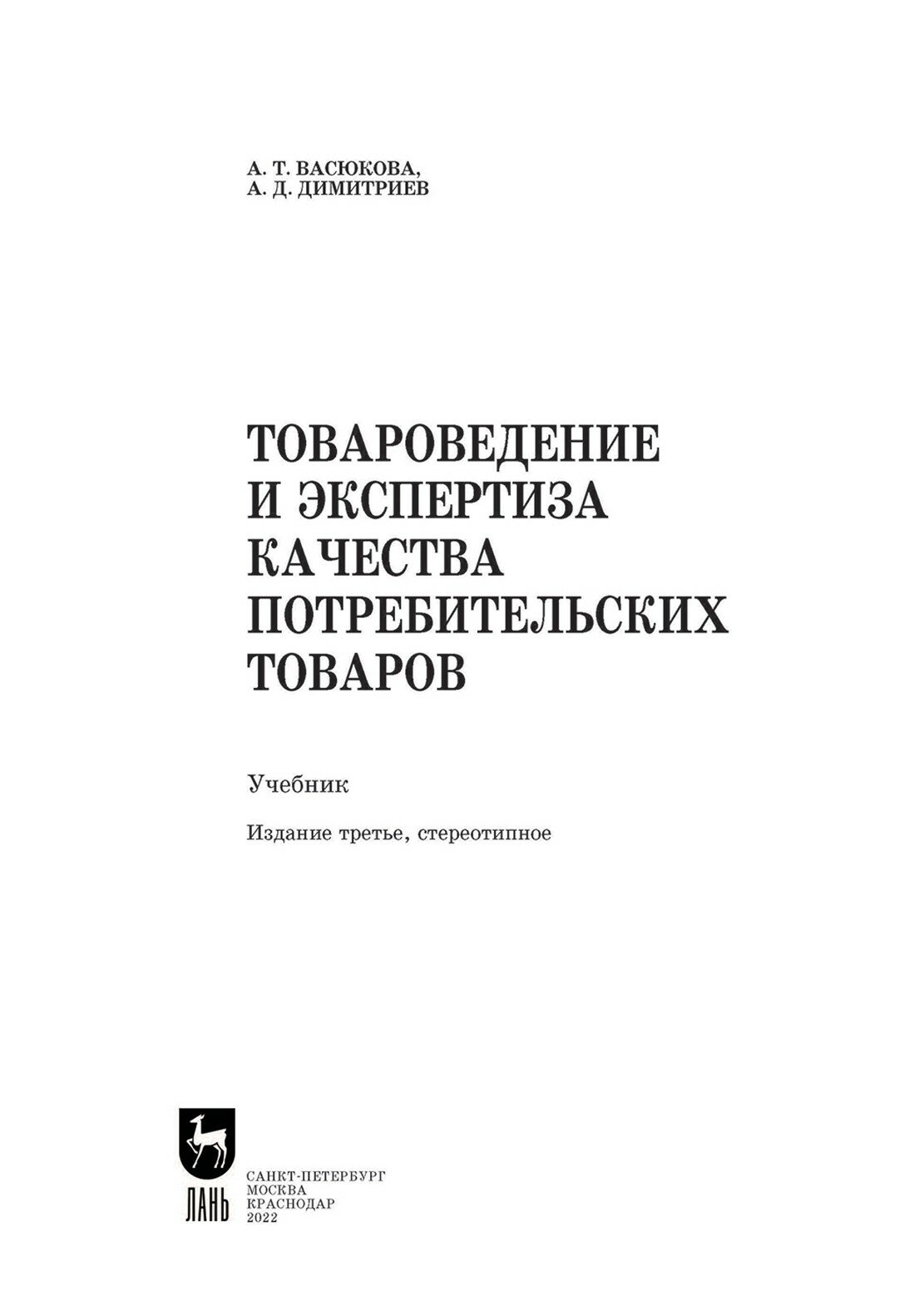 Товароведение и экспертиза качества потребительских товаров. Учебник (Васюкова Анна Тимофеевна, Димитриев Алексей Димитриевич); Лань, 2022