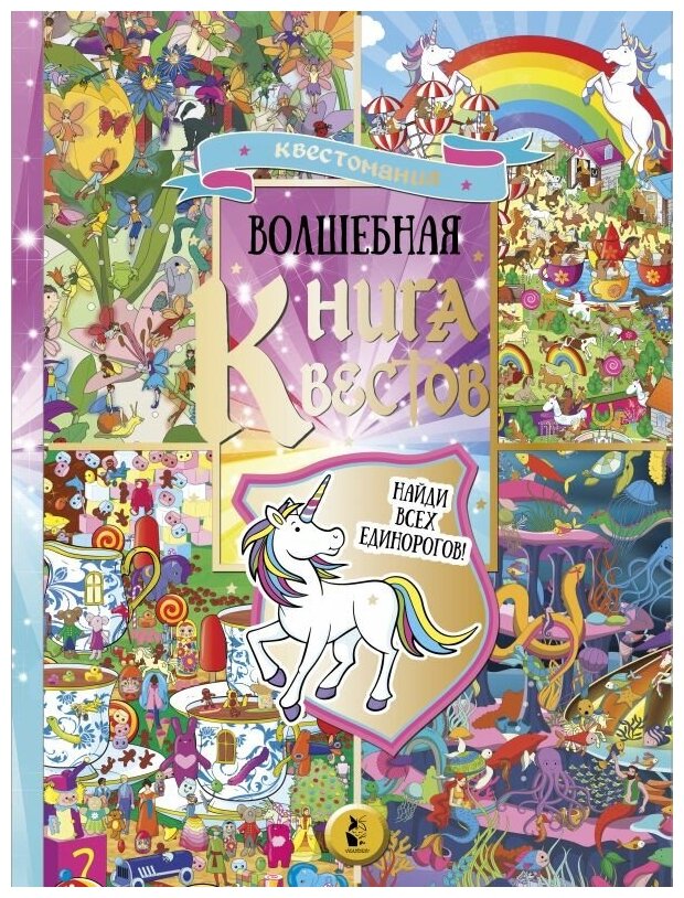 У нас из этой серии 2 книжки, эта и Большая книга сказочных квестов. Волшебная книга квестов больше формат, толще много страниц. Страницы плотные. И в этой книге только искать единорогов, а в большой книге квестов есть ещё раздел где нужно найти на картинке, например, 7 гномов, 2 кролика и тп. То в этой книге таких заданий нет. Жаль. А так все понравилось, дочка довольная.