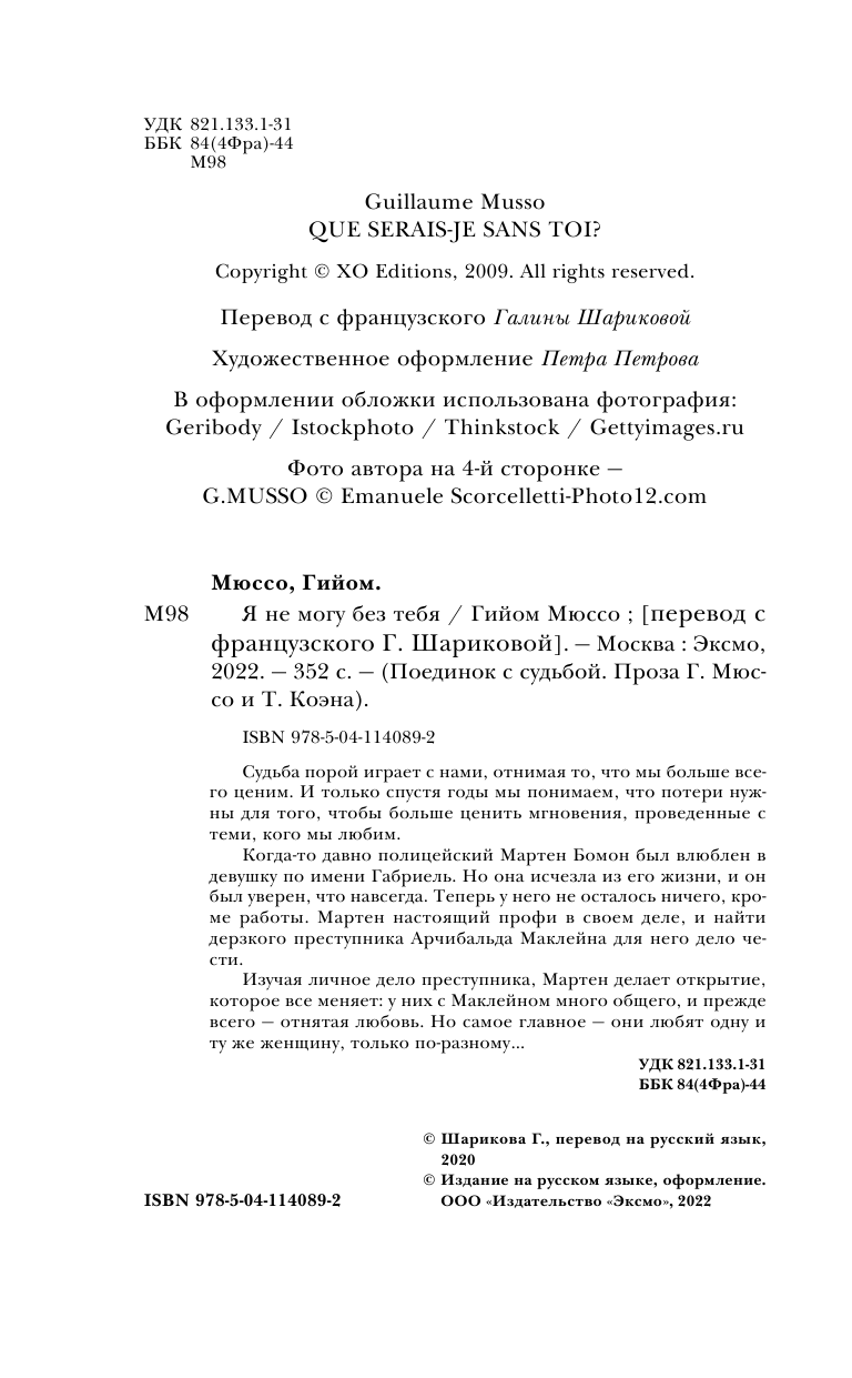 Книга: Я не могу без тебя (Гийом Мюссо); Эксмо, Редакция 1, 2021