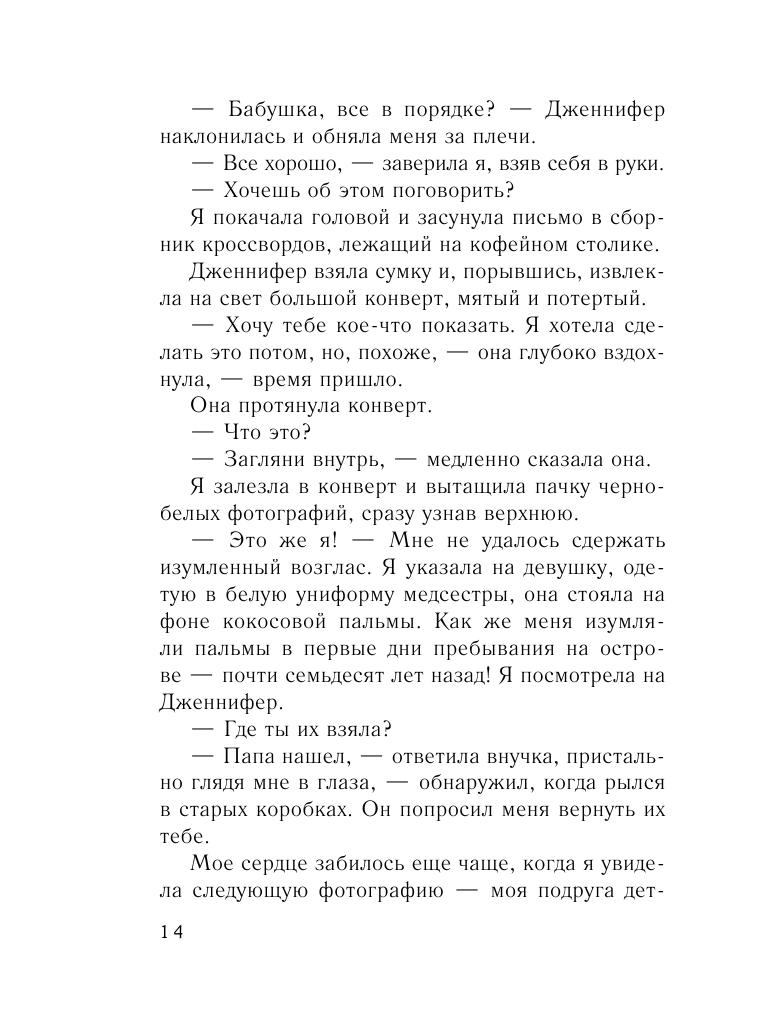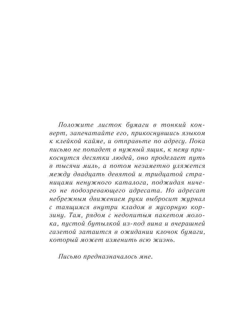 На мой взгляд это лучшая книга Сары Джио!!! Столько эмоций не испытывала не с одной другой её книгой! С начала и до конца, невозможно оторваться! Чувствовала как сильно волнуюсь за героев, аж сердце выпрыгивало из груди! Две последние главы рыдала, для чего пришлось идти дочитывать в другую комнату. Сюжет захватывает, он наполнен и личностными противоречиями, муками выбора, тревогой, тайнами, разочарованием и смирением, но главное невероятной волшебной любовью, от которой дрожь по телу! Однозначно советую к прочтению!!! По качеству издания: страницы примерно газетные, шрифт комфортный, формат компактный. Обложка, как и у других книг С. Джио этого издательства, абсолютно не связана с текстом, просто симпатичная картинка. Название не пойму почему перевели именно таким образом, в оригинале вообще другое.