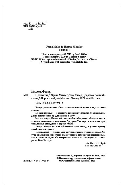 Книга: Проклятая (Фрэнк Миллер, Том Уилер); Эксмо, Редакция 1, 2020