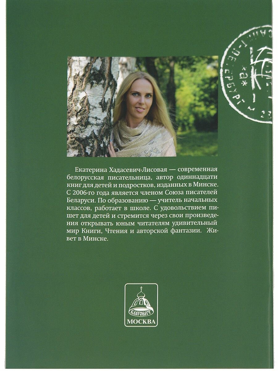 Екатерина Хадасевич-Лисовая - современная белорусская писательница, автор 11 книг для детей и подростков, изданных в Минске. С 2006-го года является членом Союза писателей Беларуси. По образованию - учитель начальных классов, работает в школе. С удовольствием пишет для детей и стремится через свои произведения открывать юным читателям удивительный мир Книги, Чтения и авторской фантазии. Живет в Минске.