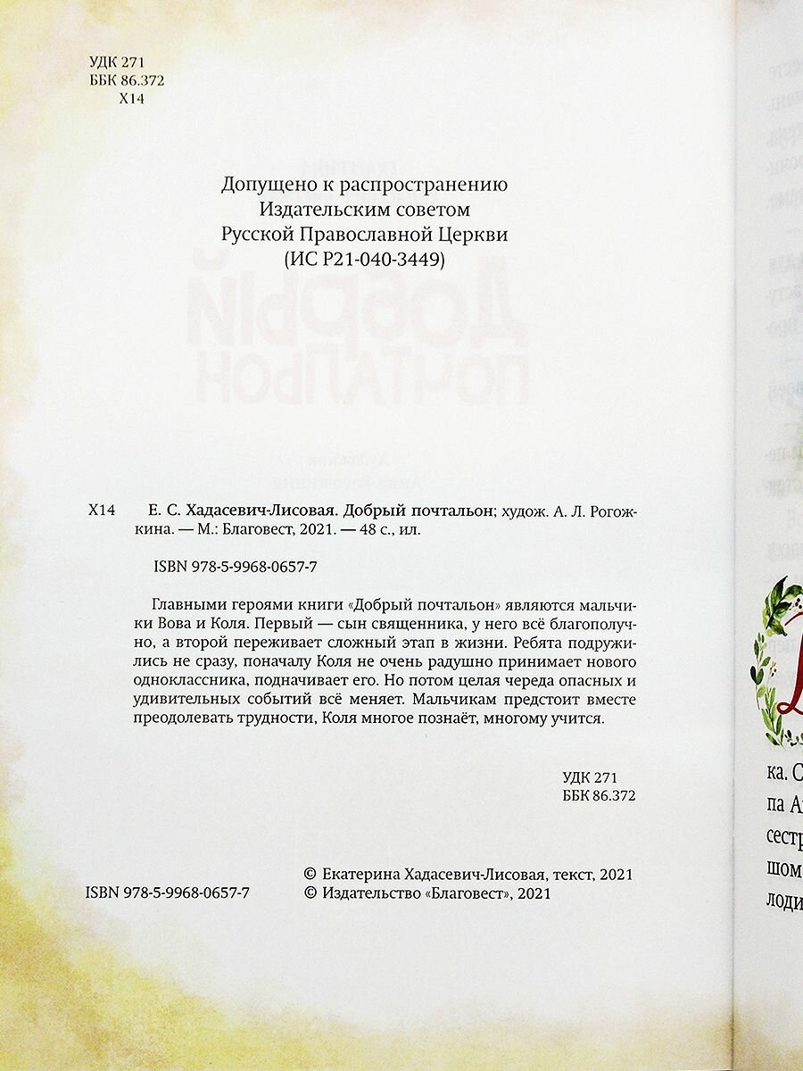 Книга: Добрый почтальон (Хадасевич-Лисовая Екатерина); Благовест, 2020