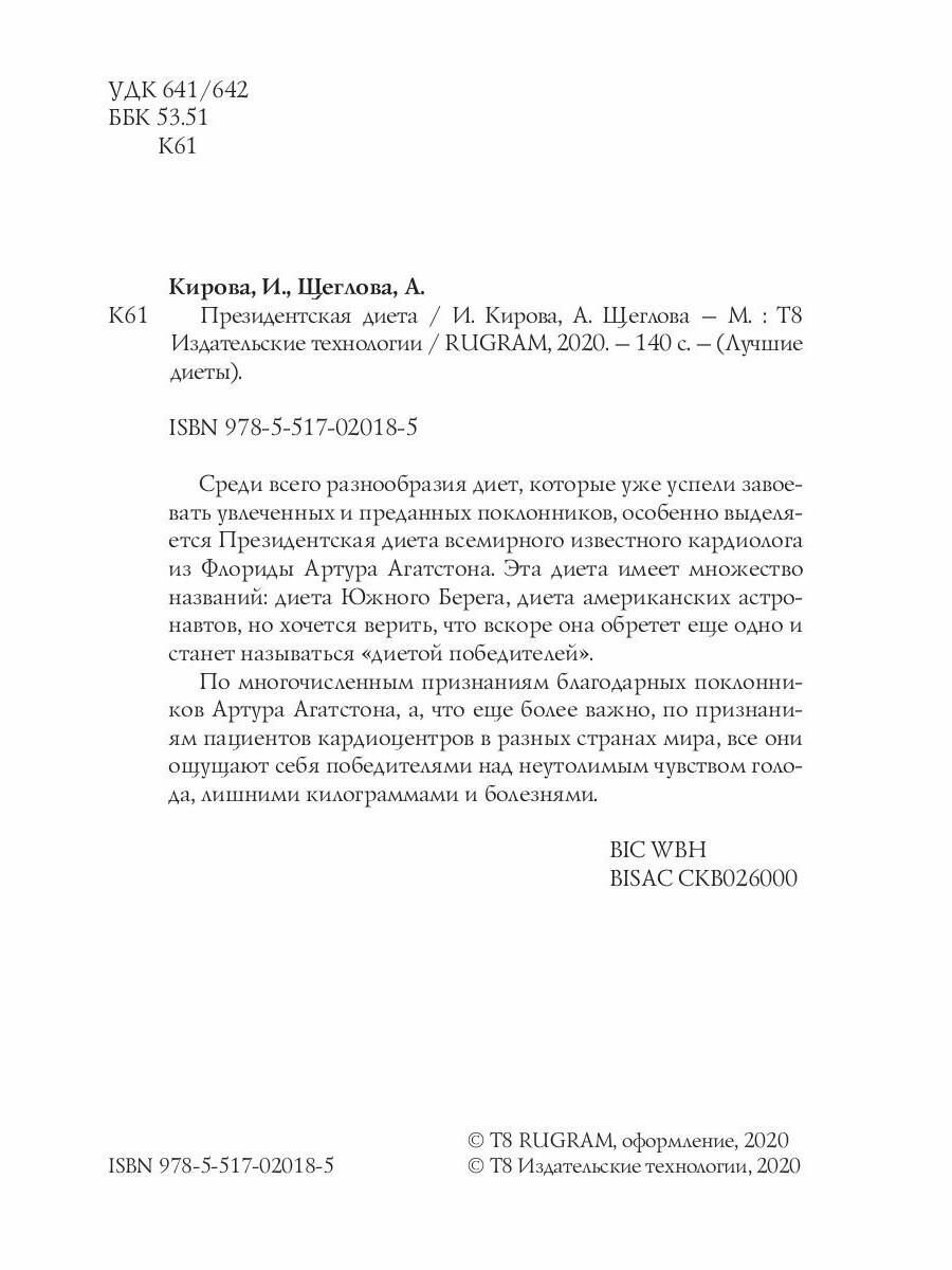 Книга: Президентская диета (Кирова Ирина Юрьевна; Щеглова Анна Вячеславовна); Т8 Издательские технологии, 2020