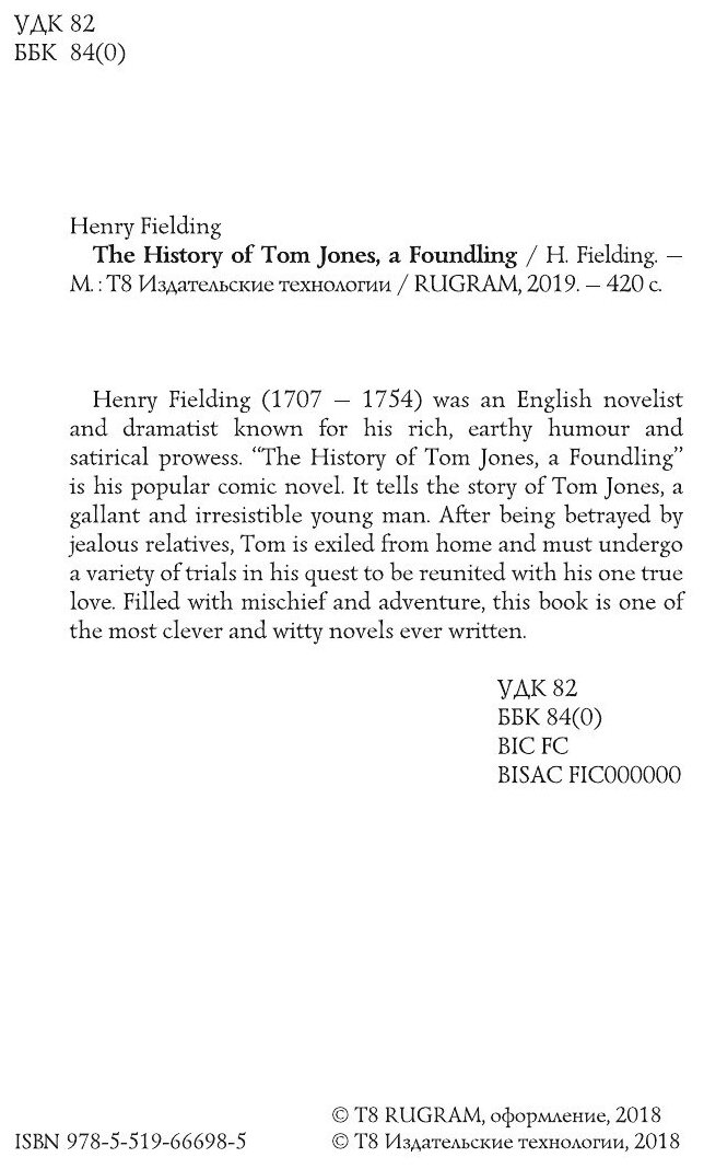 The History of Tom Jones a Foundling I / История Тома Джонса I (Fielding H.); RUGRAM_Publishing, 2019