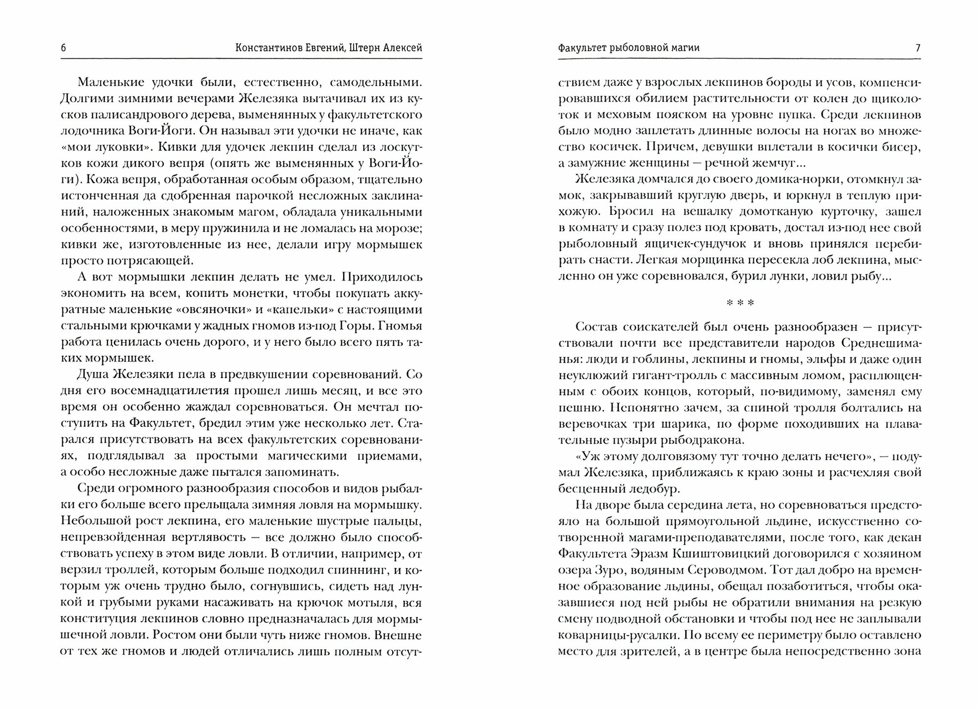 Любителям рыбалки, как говорится, посвящается! Не знаю, зачем купила,обычно читаю зарубежных писателей, а тут понадеялась на "русское чудо". Книга переполнена специфическим рыбацким сленгом от имён героев до детального описания процесса рыбной ловли. Для меня книга читалась тяжело и, от того, долго. Сюжет начал стремительно развиваться только в конце истории. Основная идея:собрались как-то лепкин, эльф, горный тролль и гном поступить в школу рыбной ловли, егэ товарищам заменили три испытания:порыбачить на вес, порыбачить в сложной местности и порыбачить командой. И вот не думали товарищи, которые сначала и друг друга- то не знали, что к ним присоединятся вампиры, русалки, ведьмы, гномы и тд и все будут право получения образования отстаивать. А тут случился форс- мажор и ко всему нечисть из чёрной дыры полезет мир захватывать. Всё закончится хорошо, естественно, и всех примут "автоматом" за особые подвиги и заслуги перед волшебным миром.