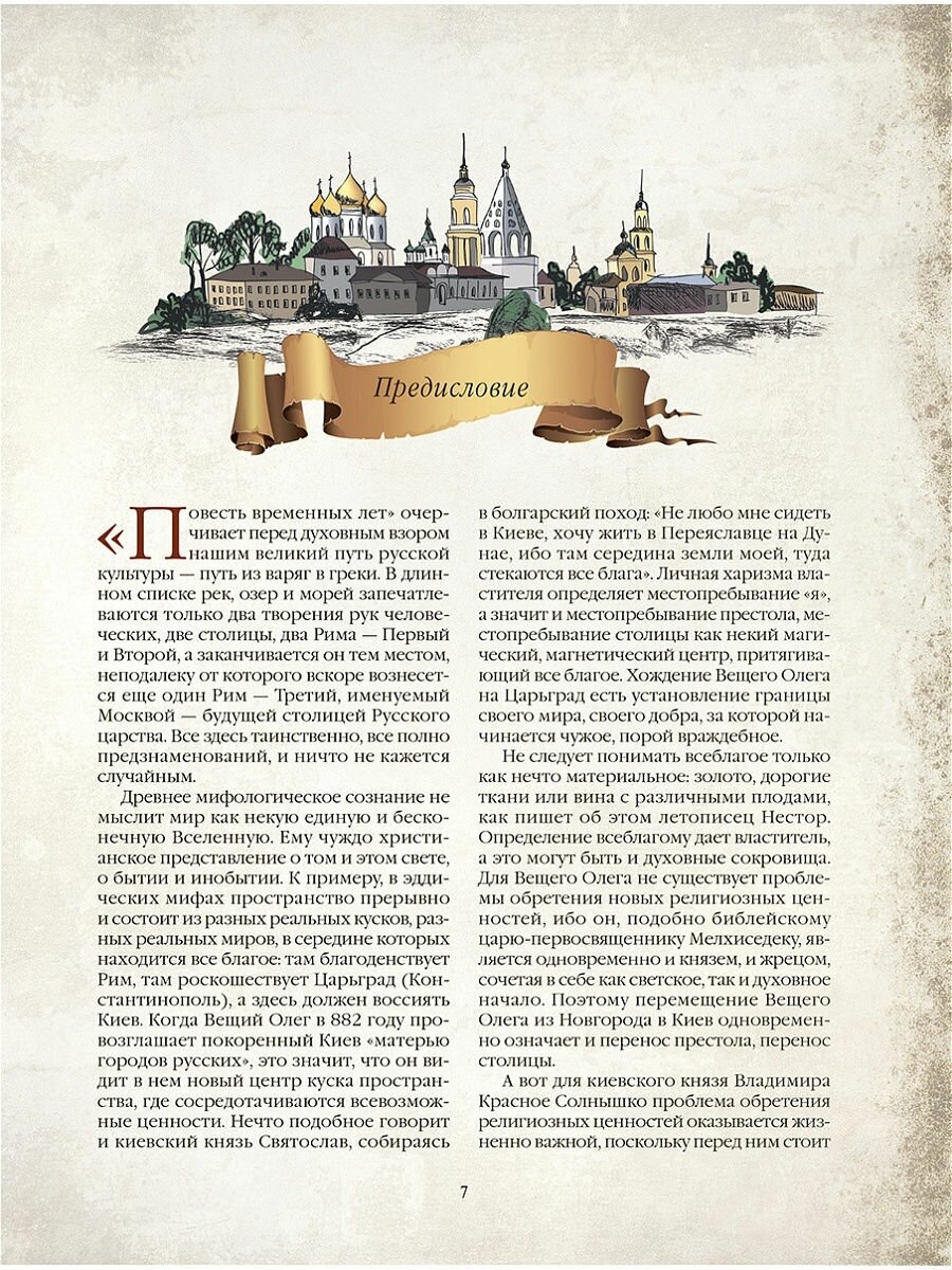 Рассказы о великих событиях и деяниях князей, жития святых и подвижников дополнены народными преданиями и легендами. Подобно легендарным древнегреческим мифам, "предания старины глубокой" разворачивают перед нами величественный образ русского мира и его грандиозной истории. Подарочное издание украсили стихотворения знаменитых русских поэтов, а также летописные миниатюры и живописные полотна известных русских художников.