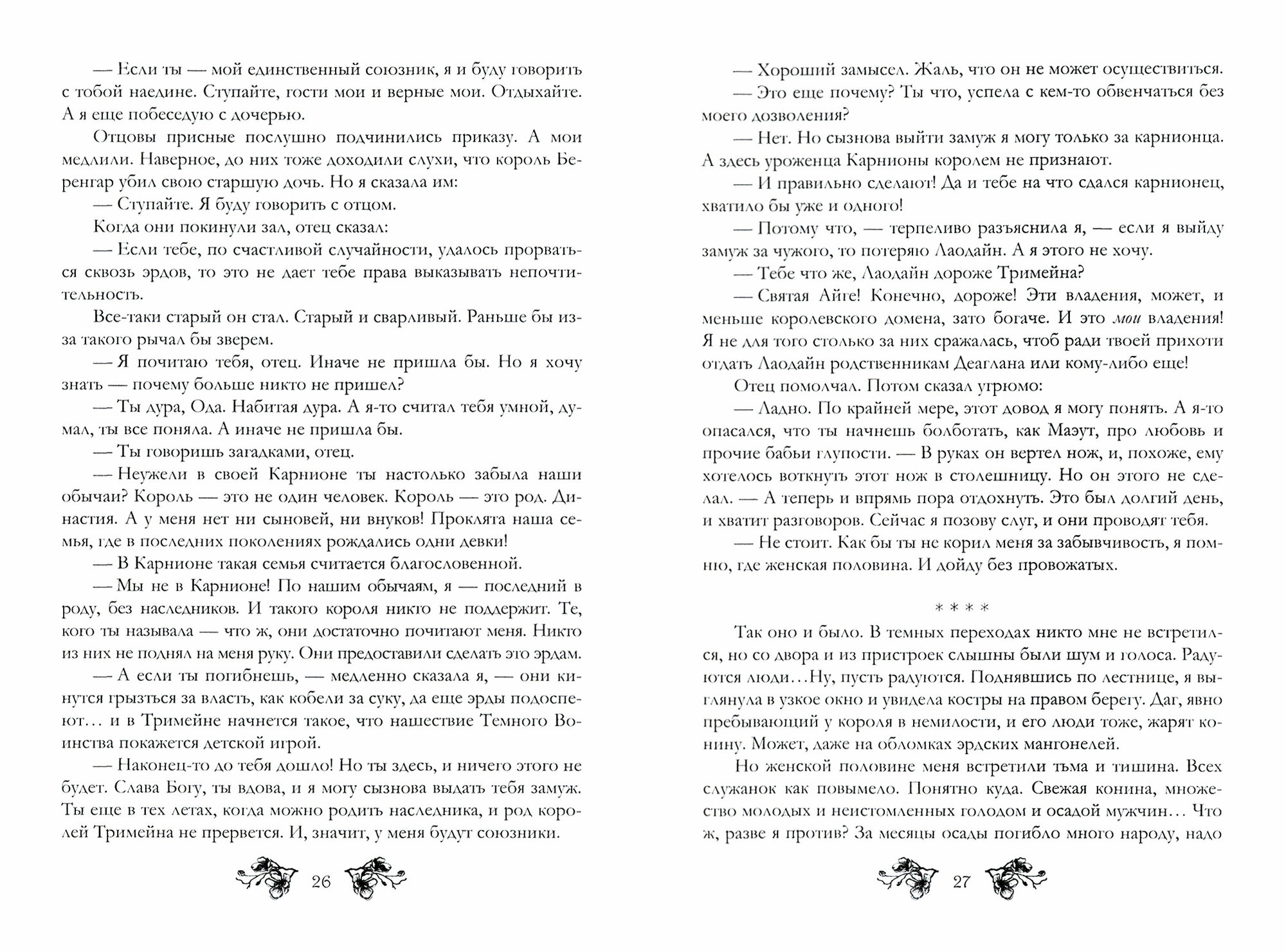 Роман в повестях "Три тьмы" повествует о трех эпизодах из истории Эрда-и-Карнионы, где действие охватывает несколько веков, и перетекает из одной повести в другую.