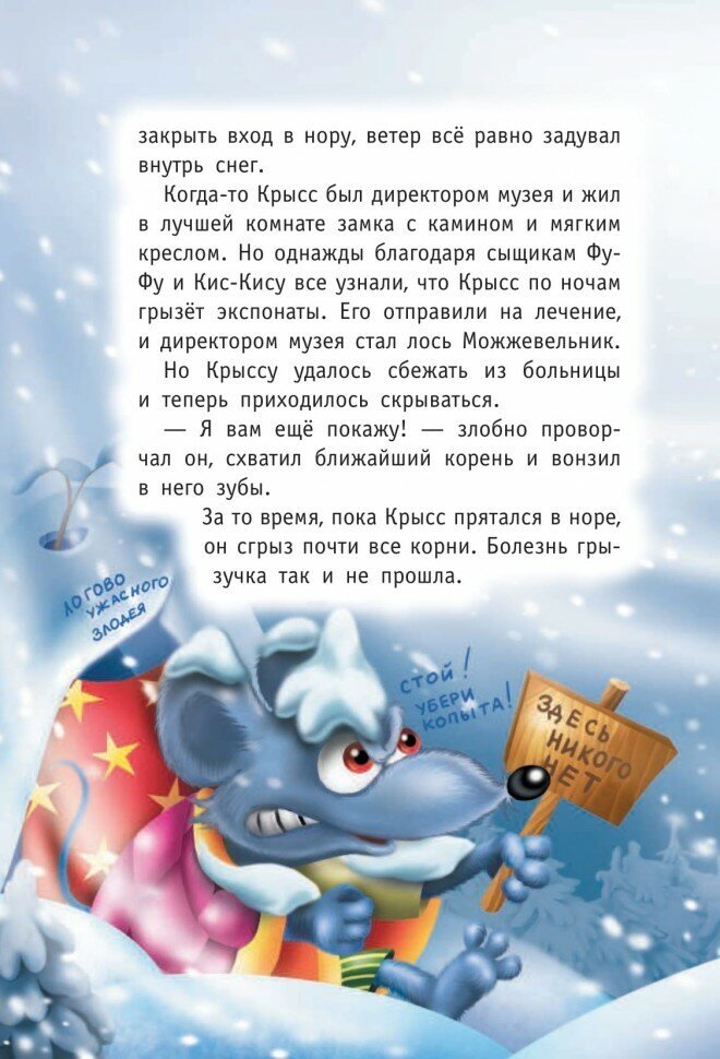 Книга-огонь! Два сыщика празднуют Звероновый год, во время которого и происходит завязка сюжета. Новый год испорчен, похищен главный атрибут нового года, и не только! Но главные герои не унывают, а героически идут по следу преступника. Очередной шедевр и радость детям.