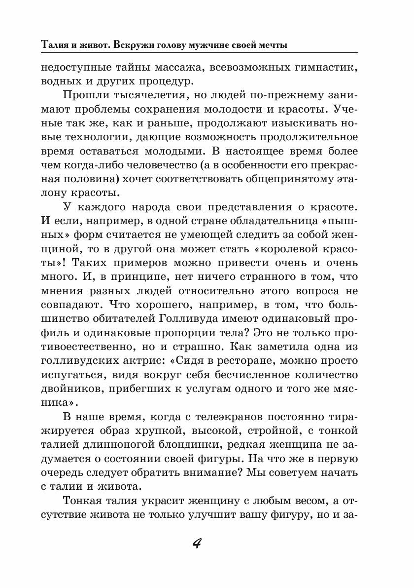 Какая женщина не мечтает быть красивой, желанной, вечно молодой?! Но не всегда есть время и желание заняться собой. И вот результат: любимая юбка с трудом налезает, пряжка ремня не застегивается на привычную дырочку... Но все поправимо. С помощью книги «Талия и живот. Вскружи голову мужчине своей мечты» вы сможете не только иметь фигуру фотомодели, но и значительно улучшить ваше здоровье. В книге вы найдете большое количество рецептов правильного питания, упражнений для коррекции талии и живота. Вы также узнаете, как с помощью одежды подчеркнуть достоинства своей фигуры и скрыть недостатки.