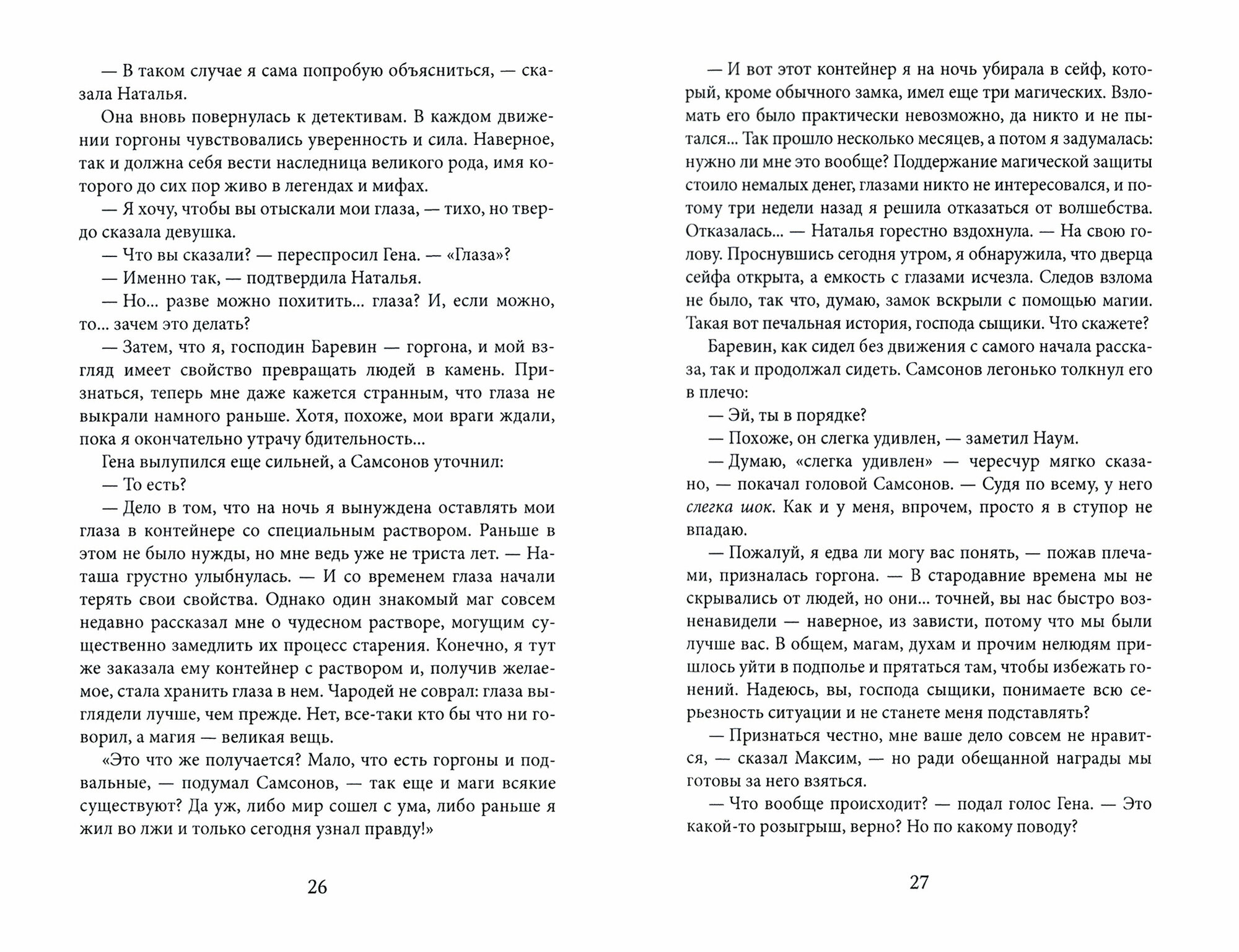 Холодным осенним утром в контору Максима Самсонова приходит странный клиент — низкий, помятый и невзрачный, но умеющий по щелчку пальцев растворяться в воздухе. Таинственный гость просит детектива отыскать некую вещь, украденную у его хозяйки, и с этого момента понять, где заканчивается явь и начинается вымысел, становится практически невозможно. Самсонову и его верному помощнику Гене Баревину предстоит окунуться в потаенный мир улочек провинциального городка — мир, где испокон веков с наукой соседствует магия, и от взгляда одинокой горгоны в жилах стынет кровь...