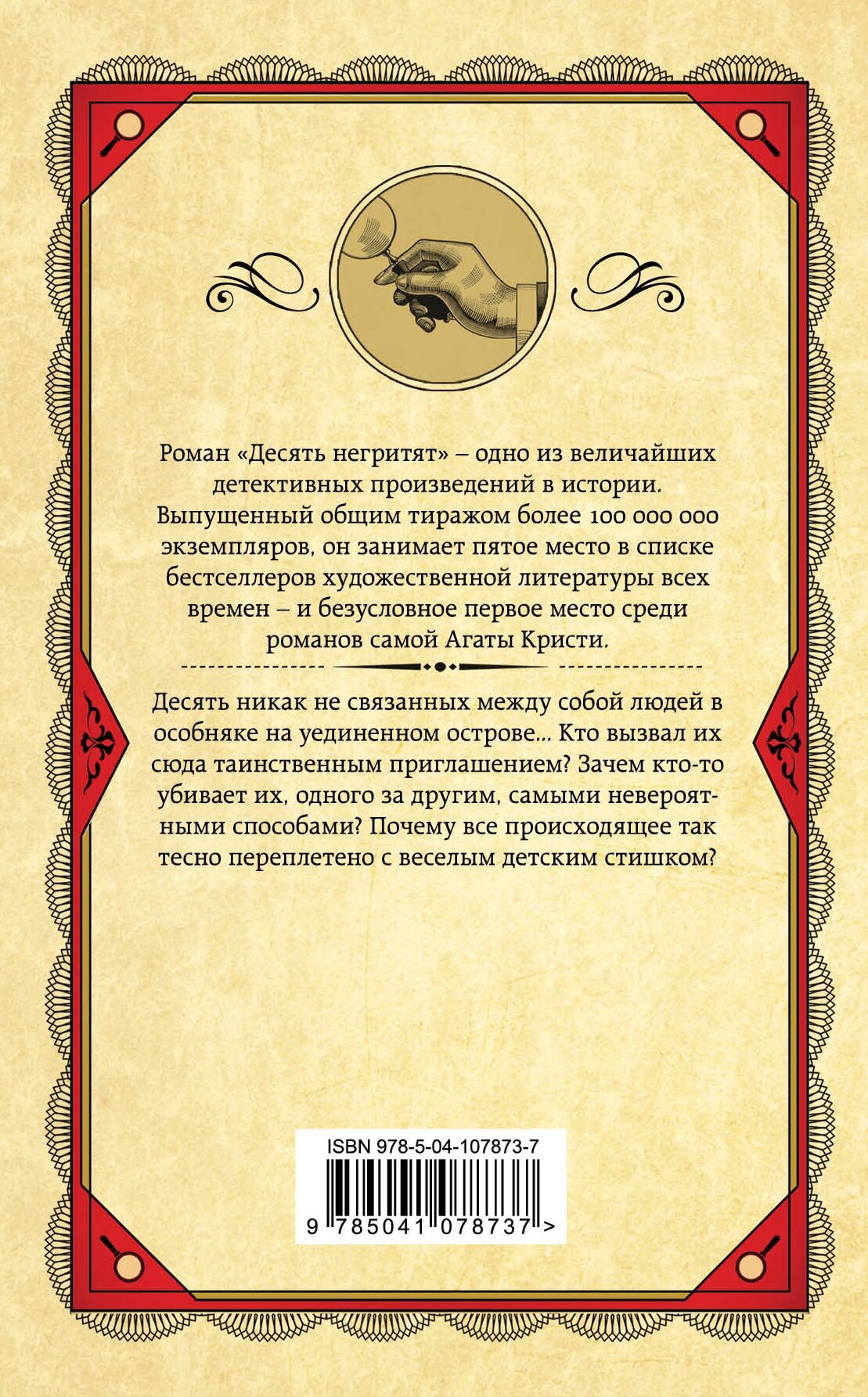 Роман "Десять негритят" – один из величайших детективных произведений в истории. Выпущенный общим тиражом более 100 000 000 экземпляров, он занимает пятое место в списке бестселлеров художественной литературы всех времен – и безусловное первое место среди романов самой Агаты Кристи.