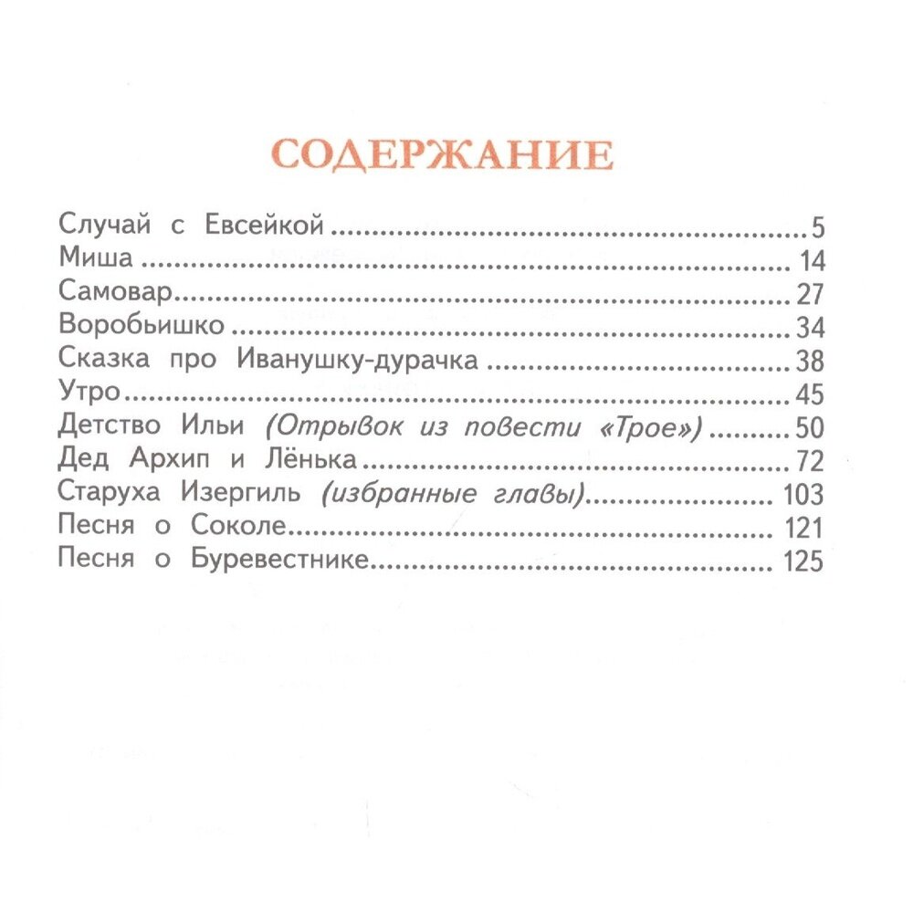Отличное издание классики для детей! Книга была в нашем списке для летнего чтения (для детей, которые закончили 2-й класс). Качественный твёрдый переплёт, «детский» шрифт, плотная белая бумага, красочные иллюстрации. Кроме того, в тексте содержатся пояснения непонятных слов, что очень важно для современных детей. Подборка произведений удачная: здесь и отрывки из «Старухи Изергиль», которую школьники будут не раз перечитывать, и «Песня о буревестнике», и сказки для младших школьников. Мы с сыном остались довольны покупкой.