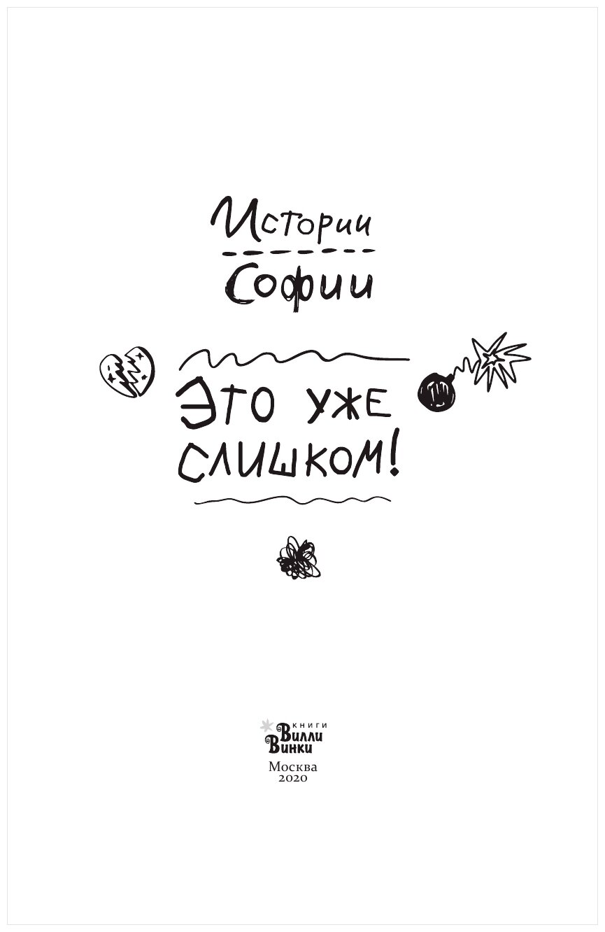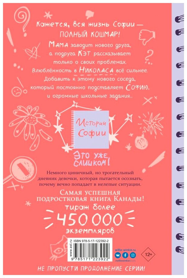 «Это уже слишком!» — следующая книга серии «Истории Софии» любимого автора канадских подростков Индии Дежардан. Благодаря чувству юмора и сильному характеру София старается стойко встречать все взлёты и падения подростковой жизни: разочарования в друзьях, трудности в учёбе и волнения первой влюблённости.