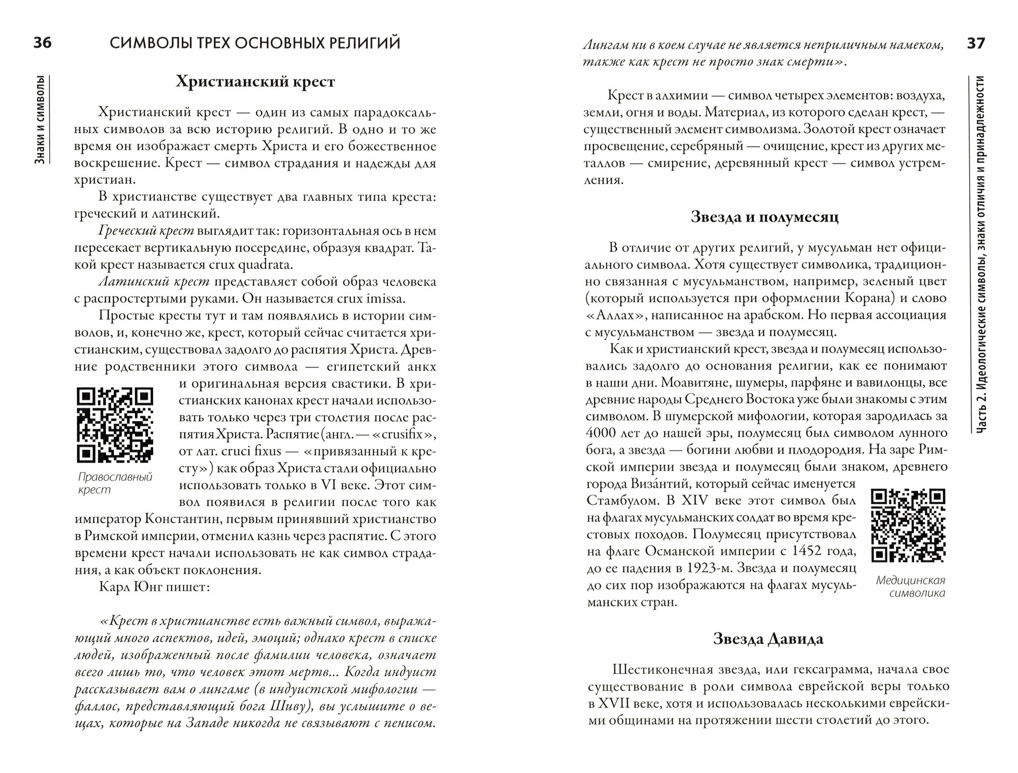 Систематизация совершенно бесполезна. Символы рассматриваются поверхностно, часть информации выглядит как простая копипаста если не из википедии, то точно с первых ссылок гугла. Да, есть интерактивные вставки для сканирования. Да, местами даже интересные замечания, но это всё тянет на статью в интернете, а не на полноценную книгу.