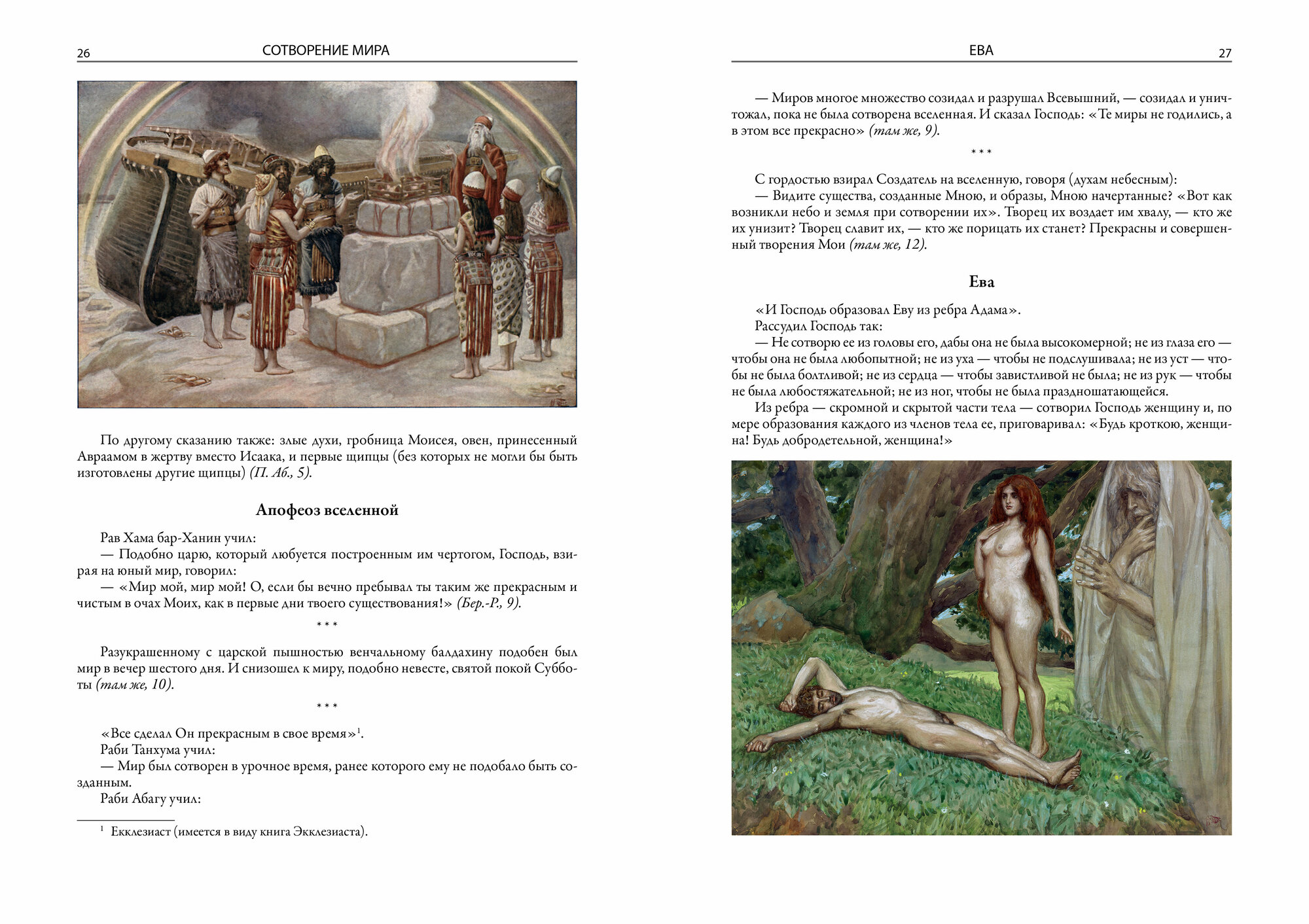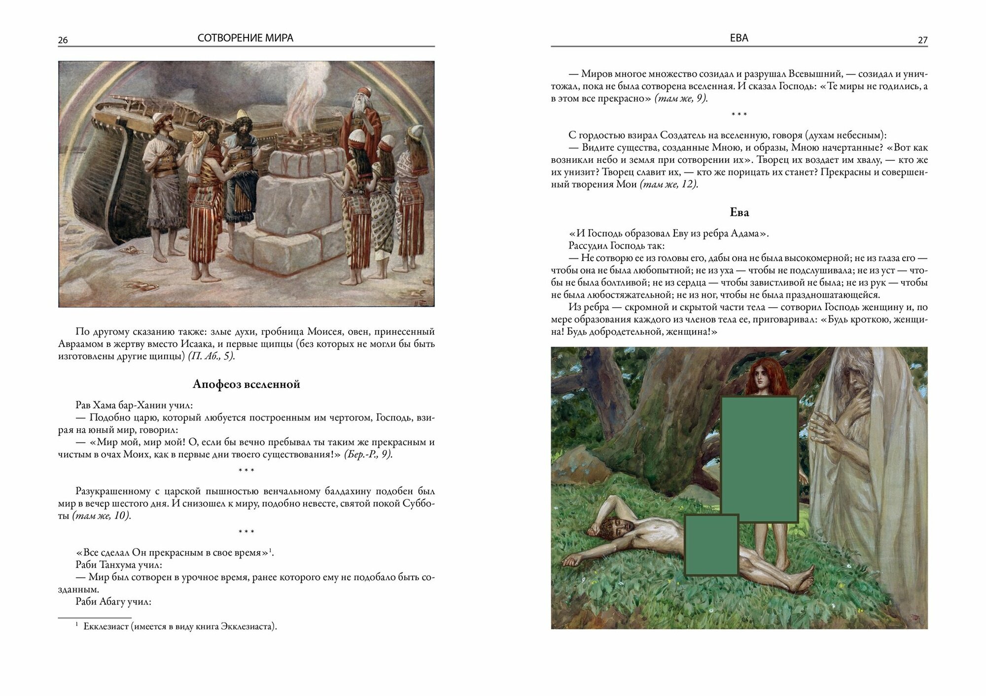 Сборник включает различные старинные еврейские предания, легенды и философские притчи, записанные в Талмуде, а также дошедшие до наших дней в так называемых Мидрашах - разделах Торы, которые содержат ее толкование. Книга, прекрасно иллюстрированная работами известного художника XIX века Джеймса Тиссо, позволяет понять мировоззрение еврейского народа в древнее время, включенные в нее легенды - яркие примеры высоконравственной жизни патриархов и законоучителей, любви к людям независимо от их национальности и вероисповедания.