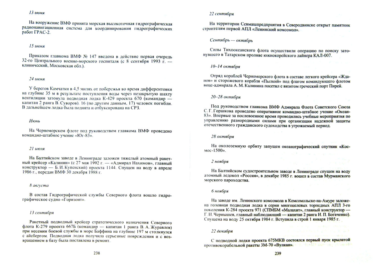 В книге приведены основные исторические события Российского флота от зарождения мореходства в древнерусском государстве до начала XXI в., связанные с зарождением и становлением отечественного ВМФ. Это даты первых походов и освоения новых земель, боев и сражений, кругосветных и дальних плаваний, географических открытий, гидрографических и океанологических исследований, восстаний и героических подвигов, катастроф и рекордных достижений, сведения о выдающихся мореплавателях и флотоводцах, конструкторах кораблей и ученых, кораблях и глубоководных аппаратах, исторические данные о создании корабельного вооружения и технических средств. Книга рассчитана на широкий круг читателей. Может служить хорошим справочником как для специалистов флота, так и для всех, кто интересуется историей Российского государства.