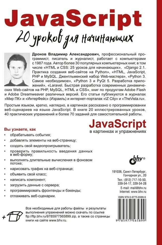 JavaScript. 20 уроков для начинающих (Владимир Дронов); БХВ-Петербург, 2020