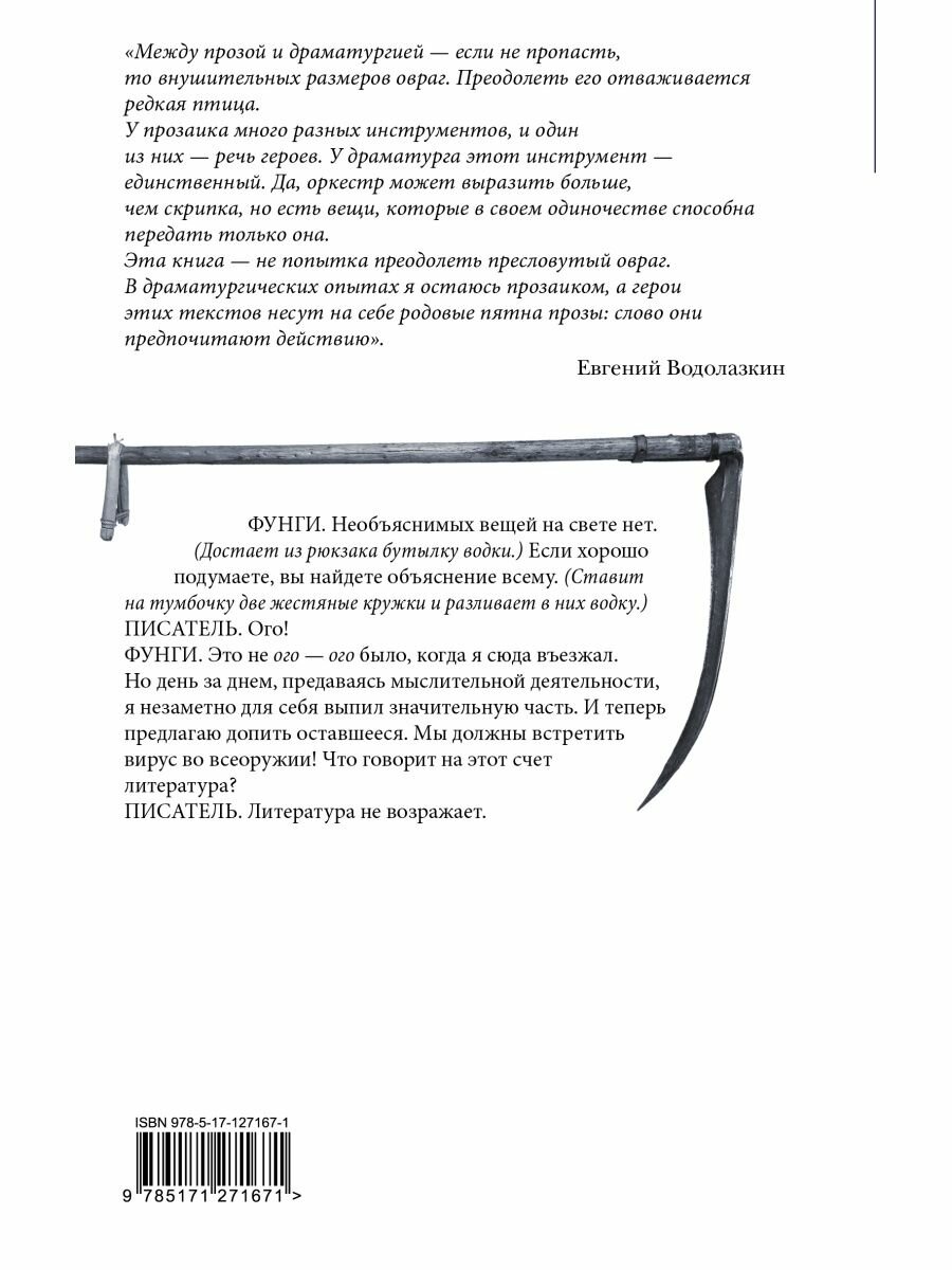 После прочтения Лавра и Авиатора я была готова скупить всего Водолазкина, какие блестящие были эти книги. И каждый след раз оказывался хуже и хуже. Ощущение, что пишет не сам автор, а литературные негры за него на пике его славы. Попытка выжать из себя что-то интересное в этих пьесах ни к чему не привела. Одноразовая книга за которую 200 руб жалко. Шрифт главное по-больше, чтобы соблюсти объём страниц и Нормик. Я тоже в институте так делала с курсовыми)) короче эта книга последняя которую купила Водолазкина. Не тратье деньги и главное время.