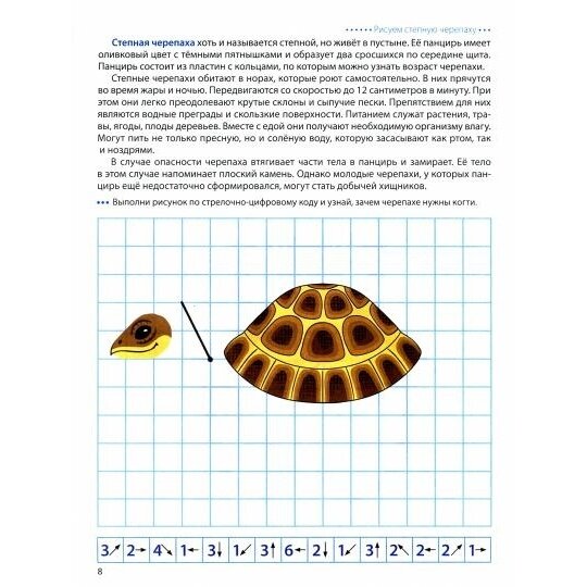 Тетрадь предназначена для работы с дошкольниками 4-6 лет по развитию пространственных представлений. Упражнения даются в виде графических диктантов и построены по принципу тренажера — приобретенные навыки закрепляются равноценными и более сложными задания