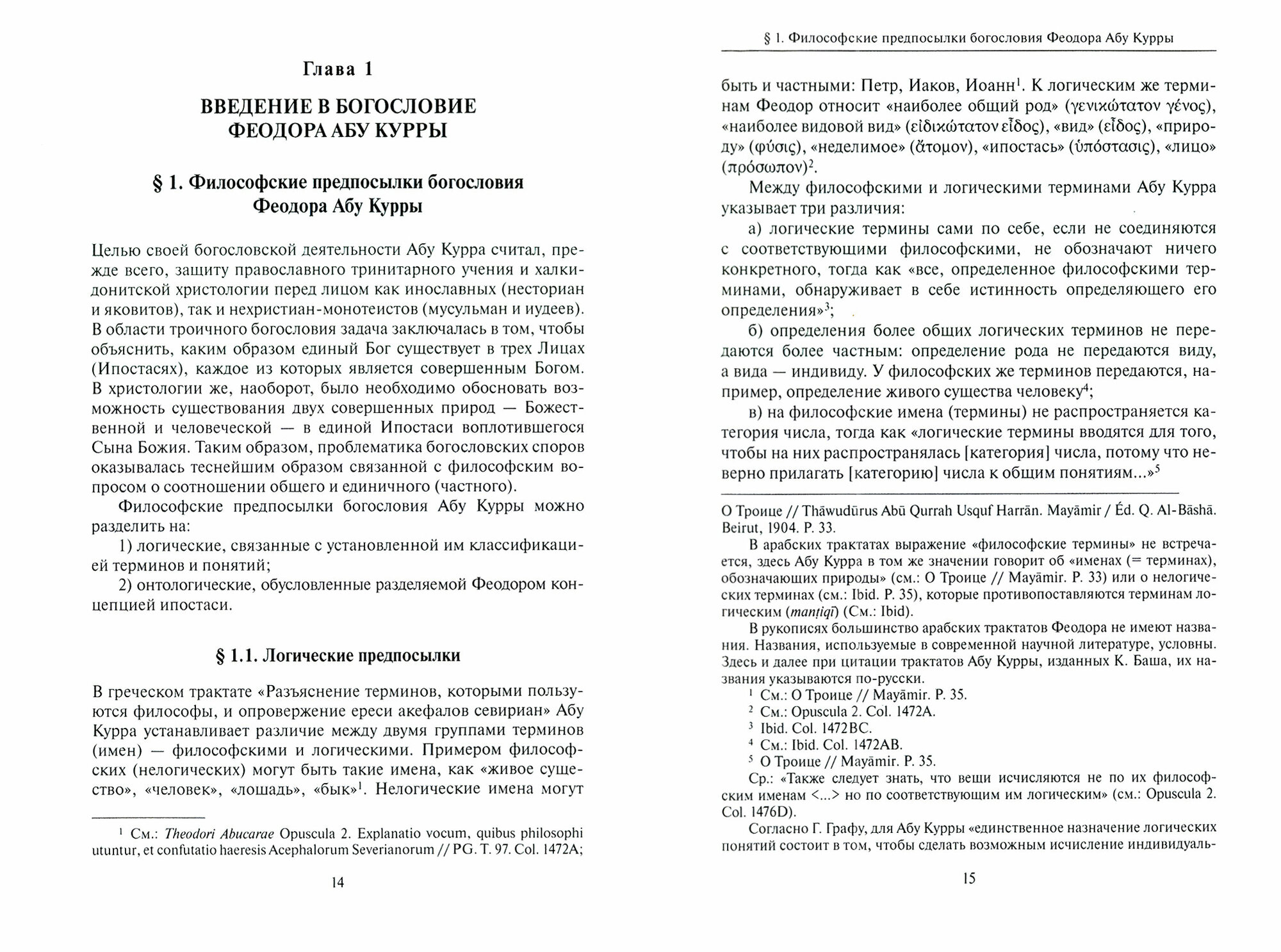 В книге доктор теологии, кандидат философских наук, профессор протоиерей Олег Давыденков представляет попытку реконструкции богословской системы виднейшего православного арабоязычного (мелькитского) мыслителя Феодора Абу Курры, епископа Харранского († ок. 830 г.), с целью проследить соответствие его богословской мысли предшествующей греческой патристической традиции. В издании впервые подробно рассматривается понятийно-терминологическая система богословия Феодора, выявляются философские предпосылки его богословия. Основным предметом исследования являются тринитарное учение и христология Абу Курры, особое внимание уделено его христологической полемике. Также представлены учение Феодора Абу Курры об искуплении и его экклезиология.