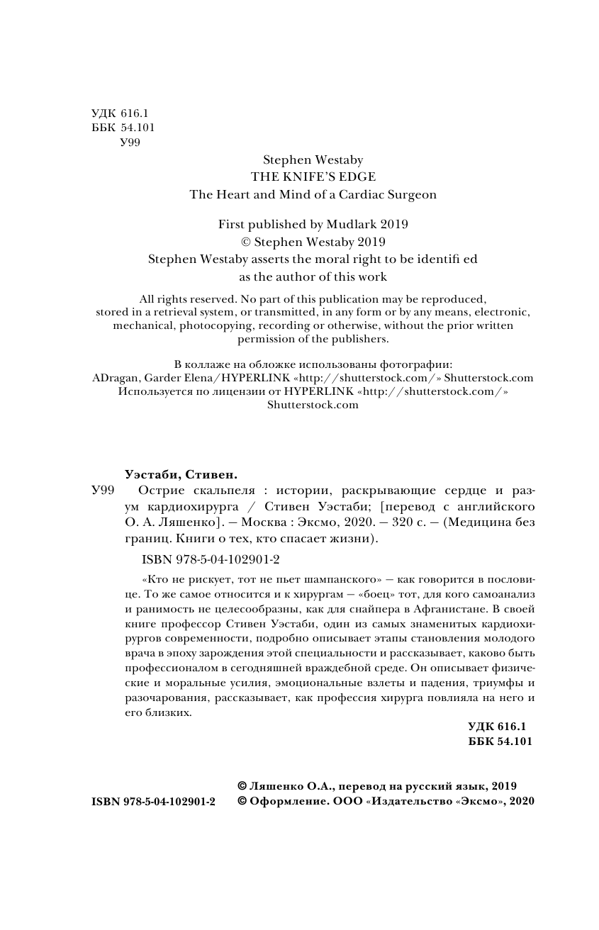 Острие скальпеля. Истории раскрывающие сердце и разум кардиохирурга (Уэстаби Стивен); ООО "Издательство "Эксмо", 2020