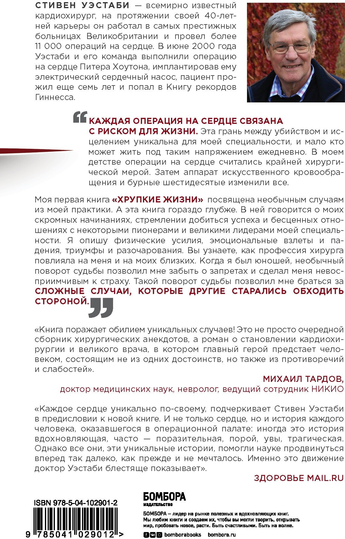 Эта книга, словно острый скальпель, вскрывает не только все тайны внутреннего мира уникального кардиохирурга, но и наболевшие проблемы британской здравоохранительной системы. Профессор Стивен Уэстаби признается читателю, как полученная в молодости травма головы изменила его личность, и как это повлияло на формирование его неповторимых профессиональных качеств. Он задается вопросом, кому можно доверить управление медицинской сферой и как сделать ее наиболее эффективной для врачей и пациентов. Он прямолинейно рассуждает, почему кардиохирург должен быть решительным, в каких случаях ему лучше забыть о сочувствии, откуда берется жажда научных открытий и стоит ли сильно увлекаться административными амбициями. Долгий путь привел его к заключению, что хирургия - это, прежде всего, про объективность, а не про человечность. В книге он постарался соблюсти это правило и по отношению к себе: история доктора Стивена Уэстаби получилась безапелляционно честной, местами по-настоящему жесткой и потому невероятно увлекательной.