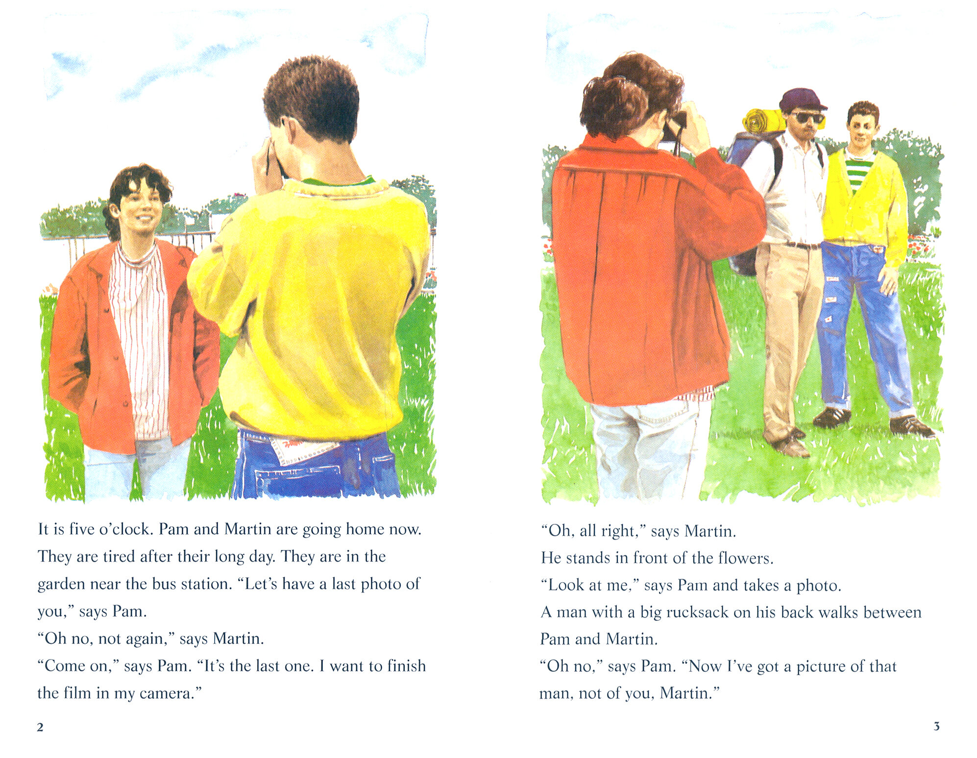 Pam and Martin visit Cambridge. Pam takes a photo, but a man walks in front of her. Later Martin sees a picture of a man in a newspaper. The police want this man. Is he the same man? And where is he now? Does Pam’s photo have the answers?