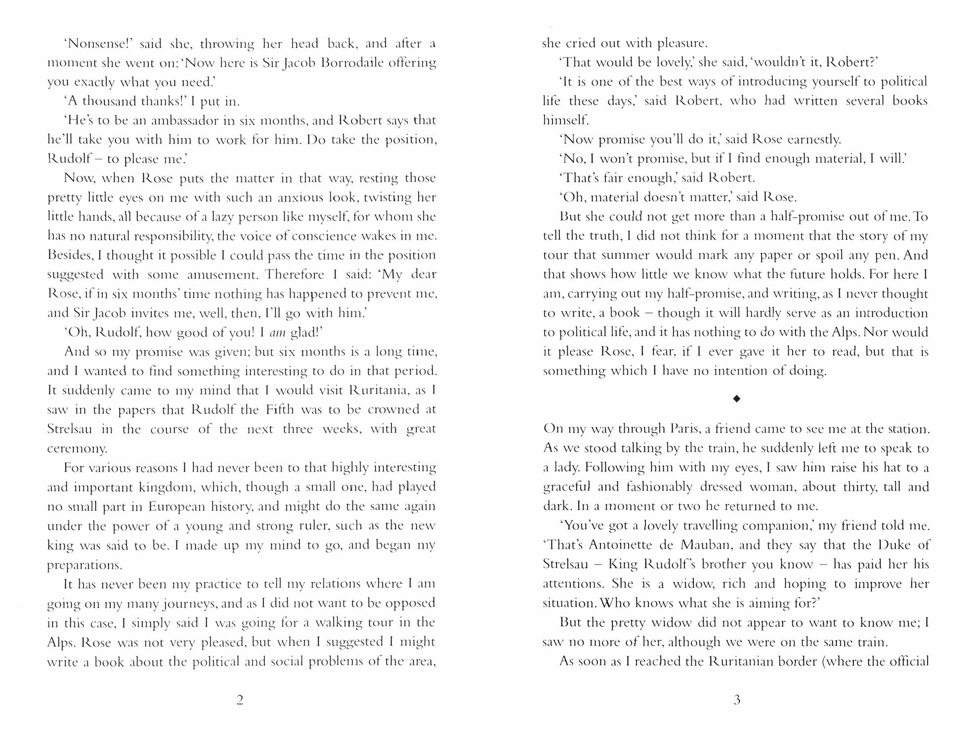Rudolf Rassendyll, a daring young Englishman looking for adventure, arrives in Ruritania for the new king’s coronation. The two men meet by chance the day before and are shocked to find that they look exactly the same! A trick leaves Rudolf in the king’s place while the king becomes the Prisoner of Zenda.