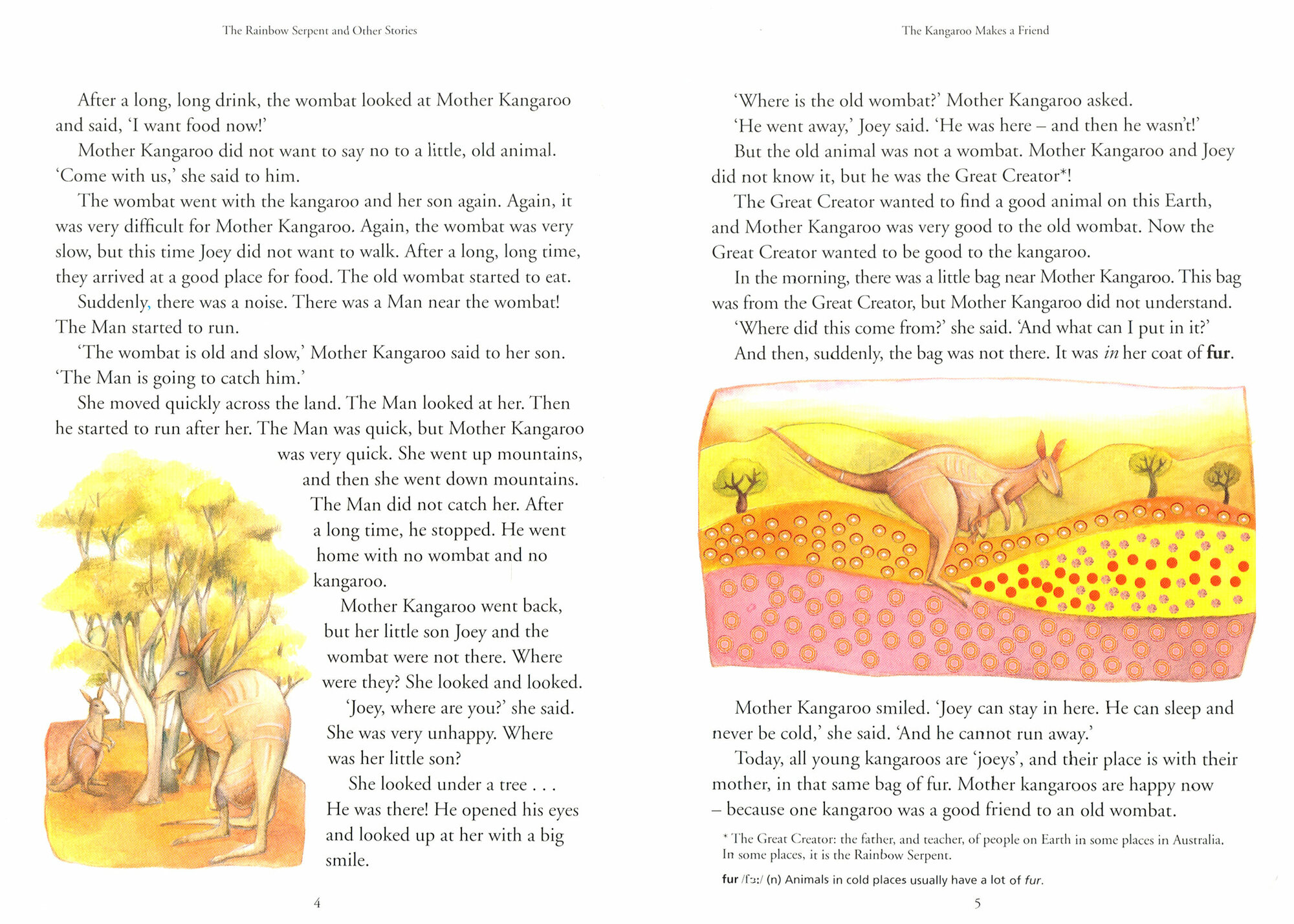 In an old Australian story, the Rainbow Serpent opened her eyes and looked at the young Earth. There were no animals or birds, no rivers or trees. Then a Man and a Woman came, and the Rainbow Serpent was their teacher. But what did she teach them? And did they listen?