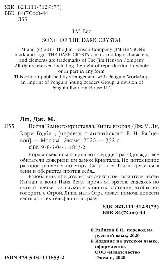 Песня Темного кристалла. Книга вторая (Дж. М. Ли); Эксмо, Редакция 1, 2020